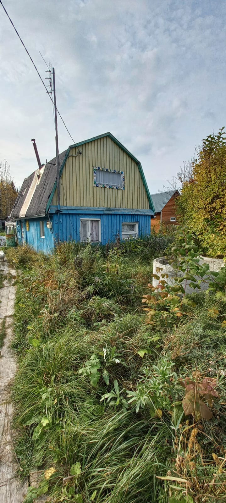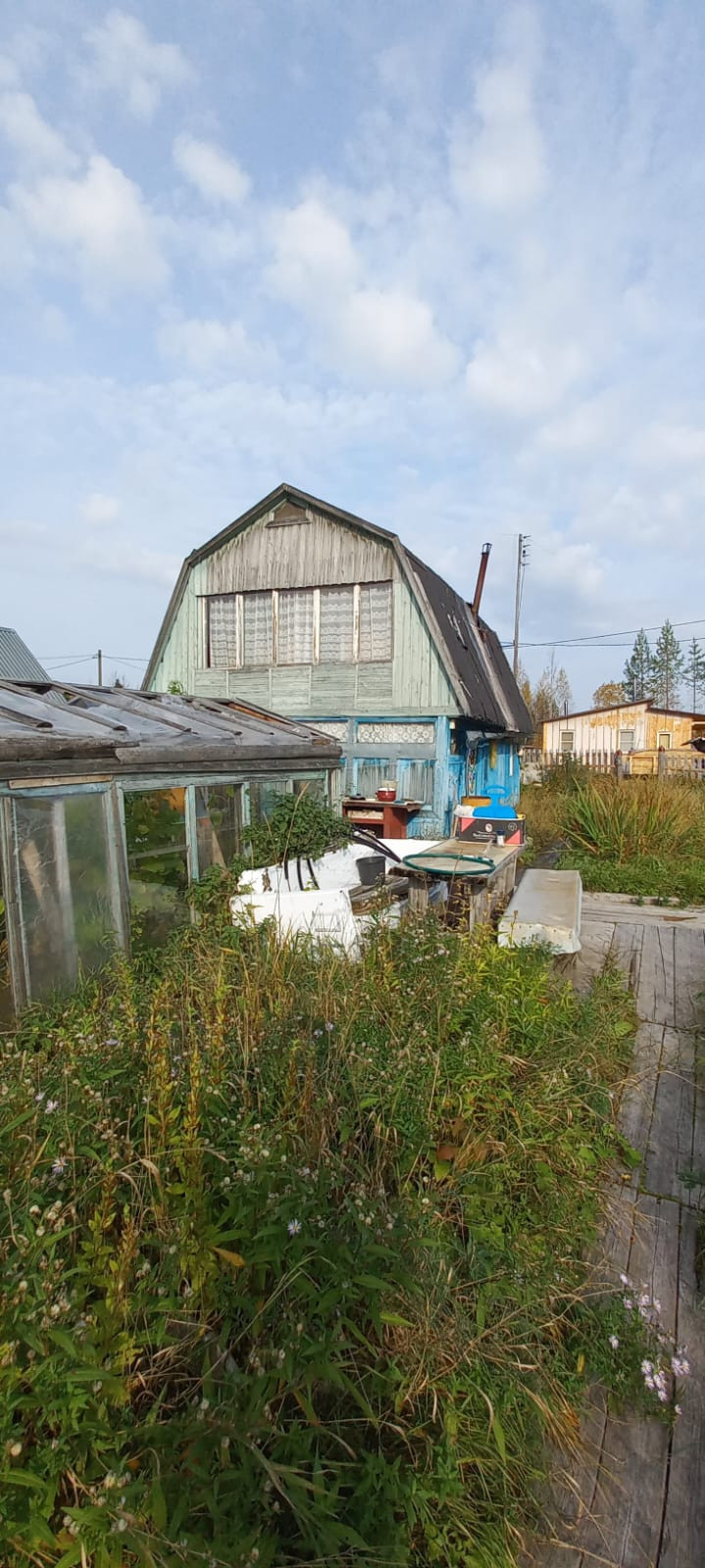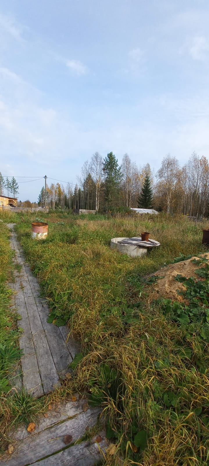 На участке дом летний,старая банька,кольца для колодца,многолетние кустарники.