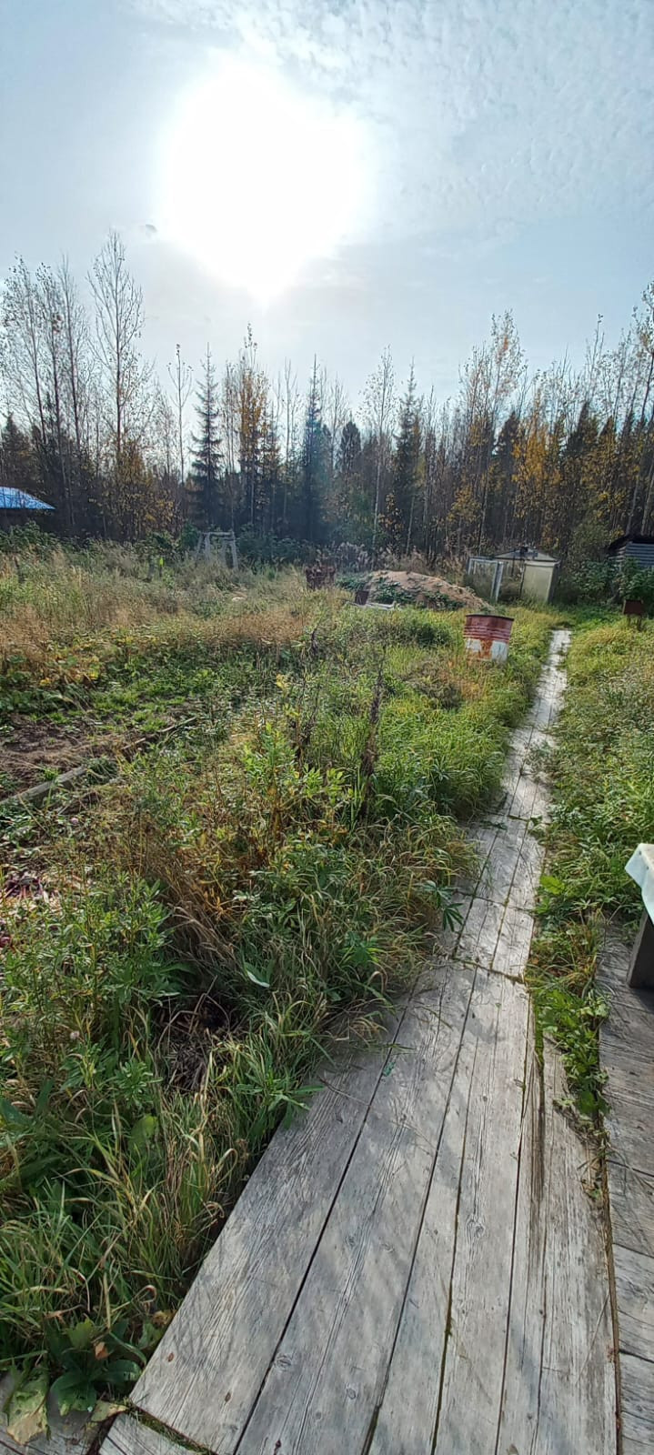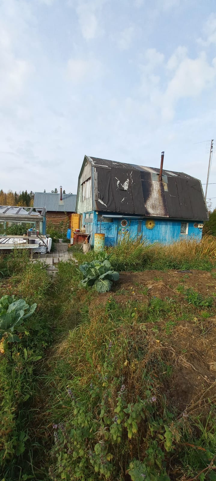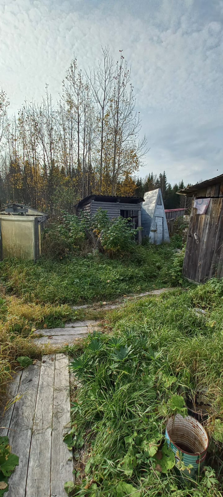 На участке дом летний,старая банька,кольца для колодца,многолетние кустарники.