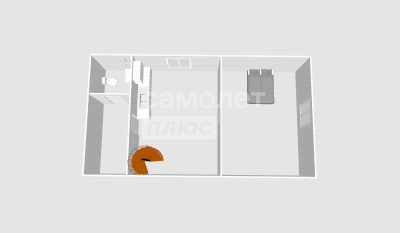 На первом этаже комната и кухня.