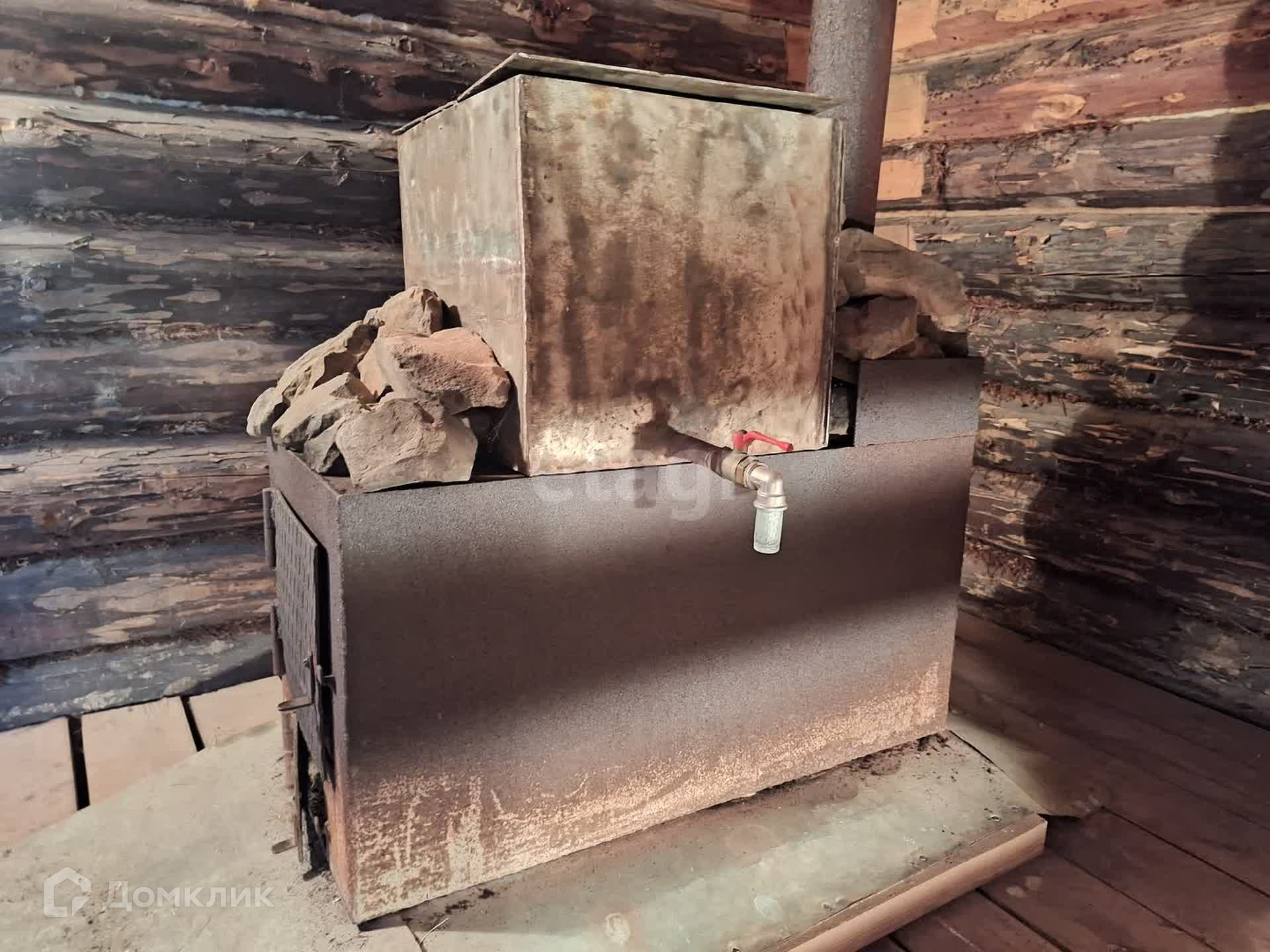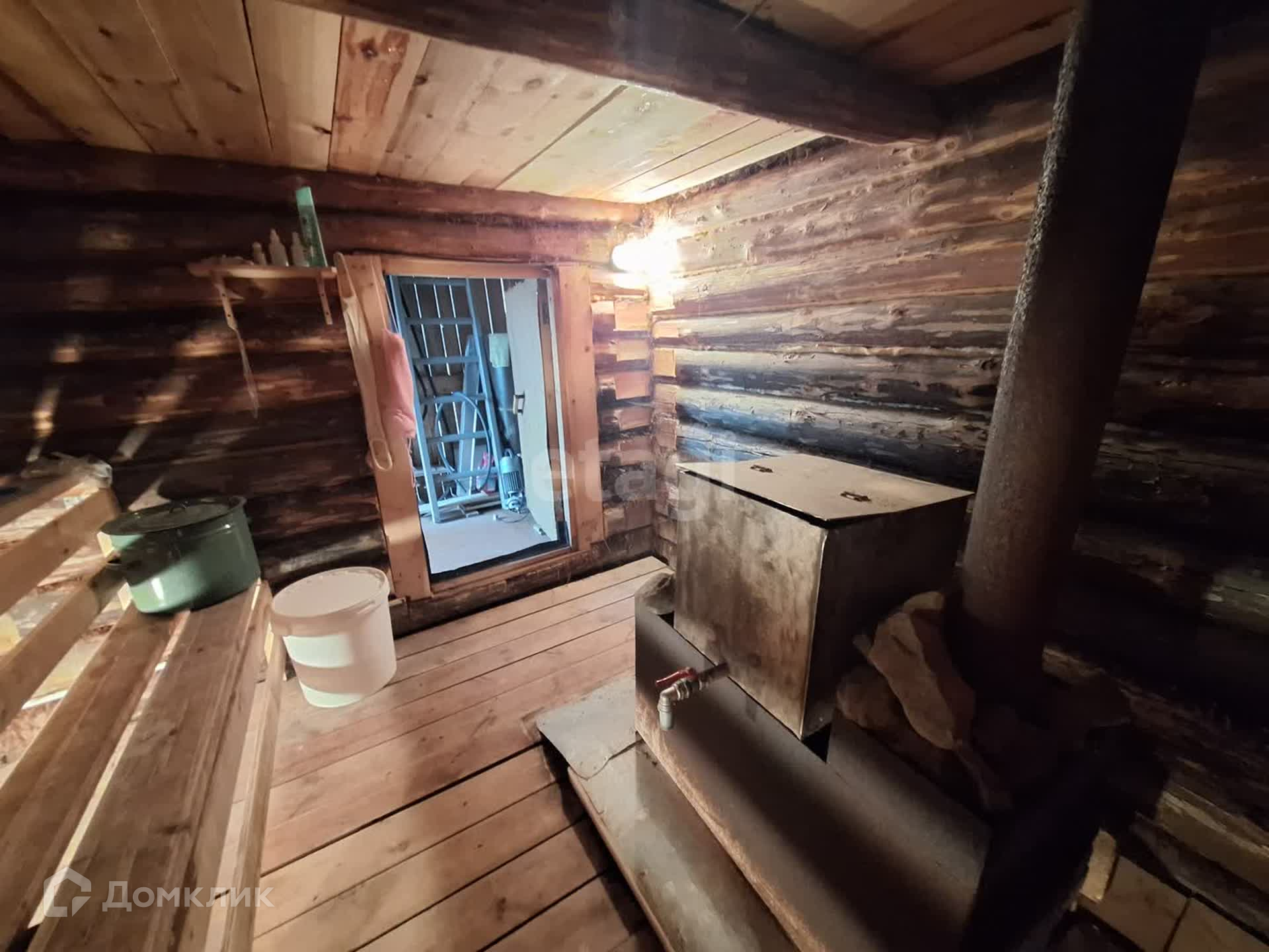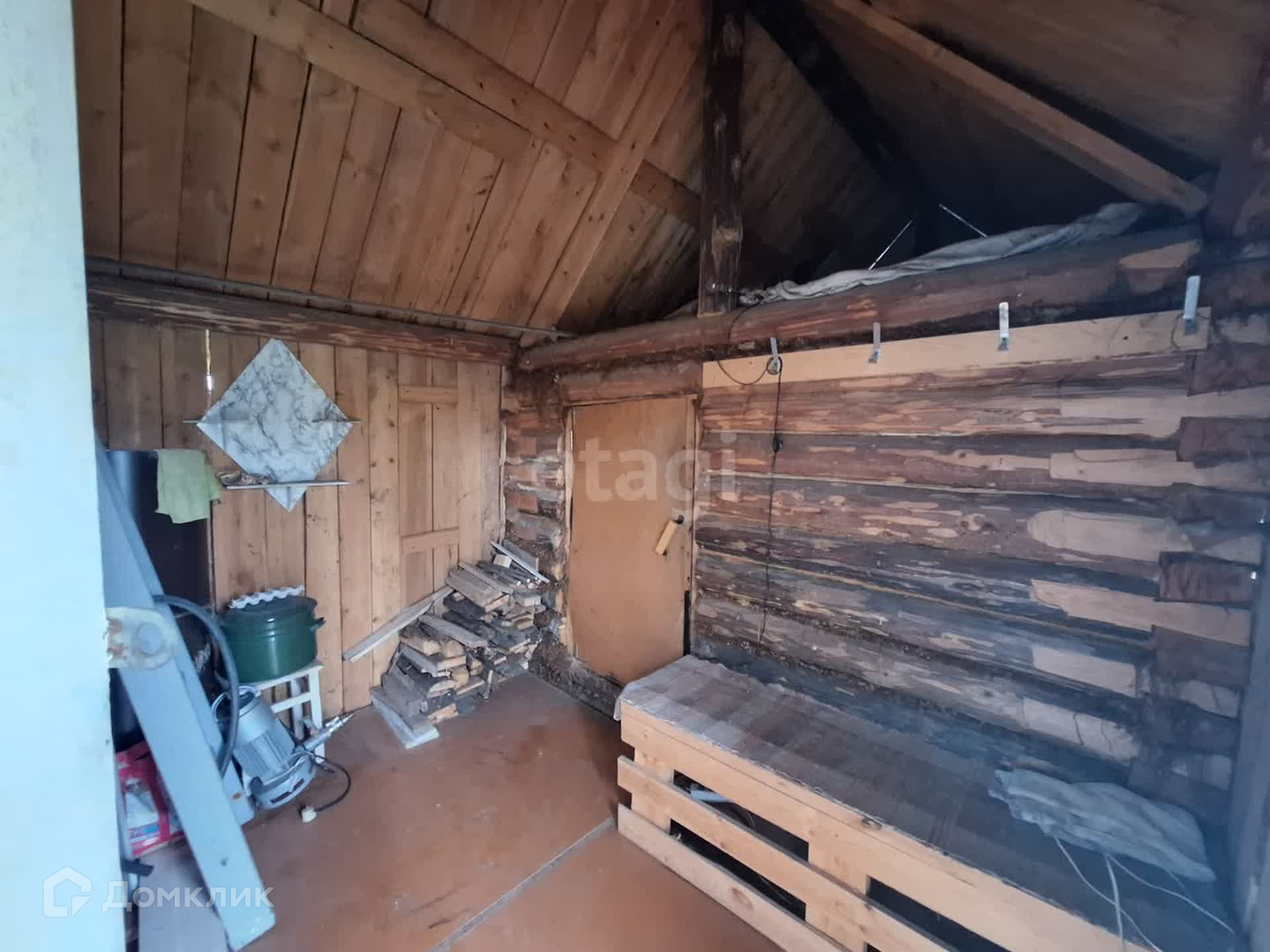 - свежая жаркая баня из бревна (фундамент - бетонные блоки, крыша - профнастил);