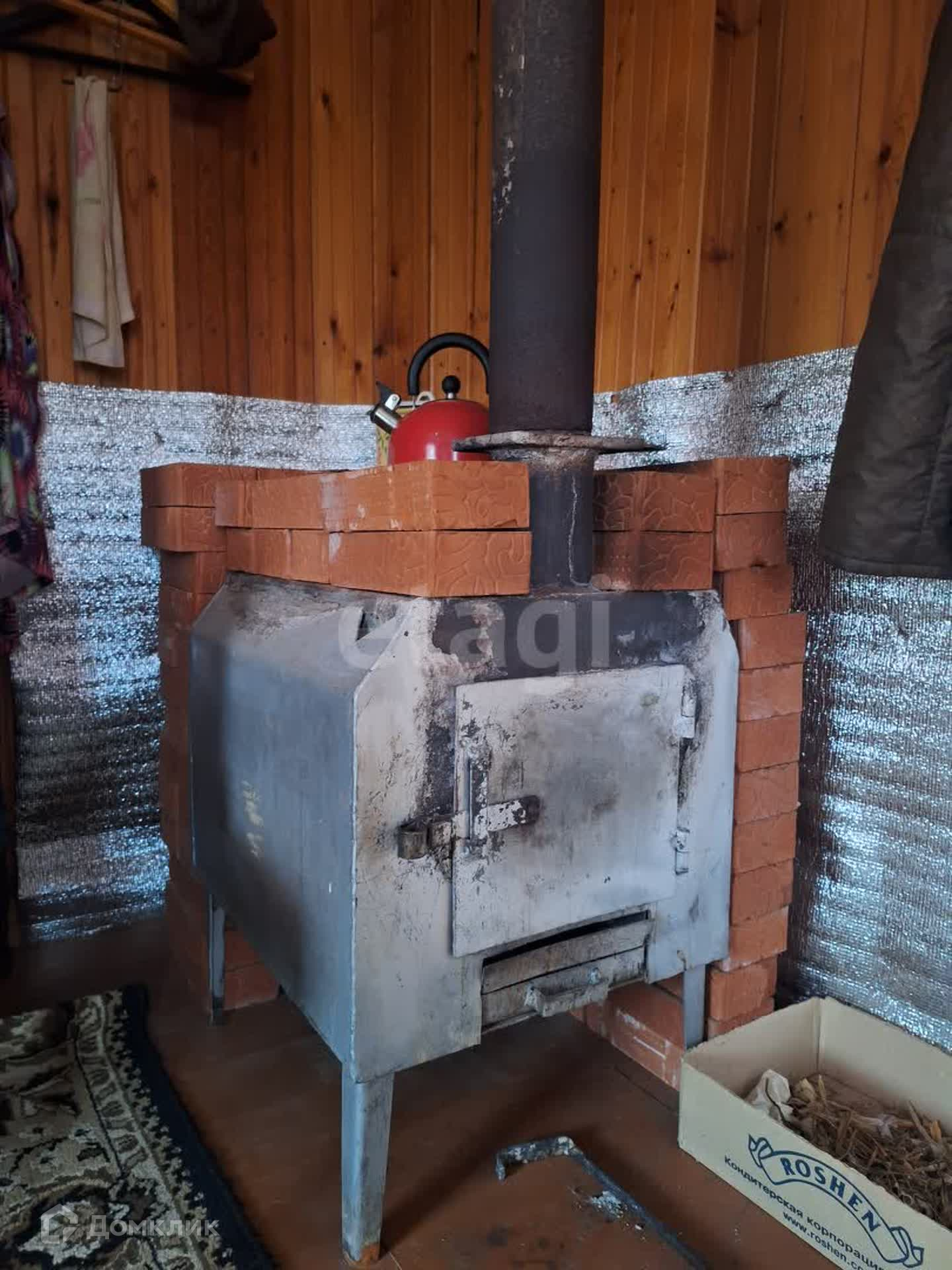 - двухэтажный дом из бревна (фундамент - бетонные столбы, крыша - профнастил, отопление - печное);