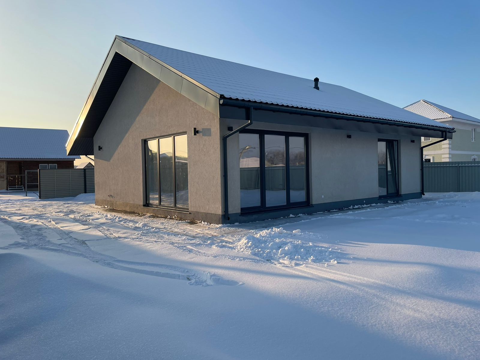 Дом построен на участке в 6 соток, который отсыпан, огорожен капитальным забором по периметру,так же установлены откатные ворота с электроприводом . На нём есть место для отдыха на свежем воздухе, а также достаточно пространства для воплощения ваших идей по ландшафтному дизайну.