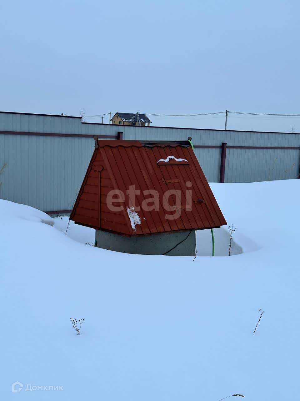 На территории участка есть уже действующий колодец, скважина 120 метров глубиной, стоит