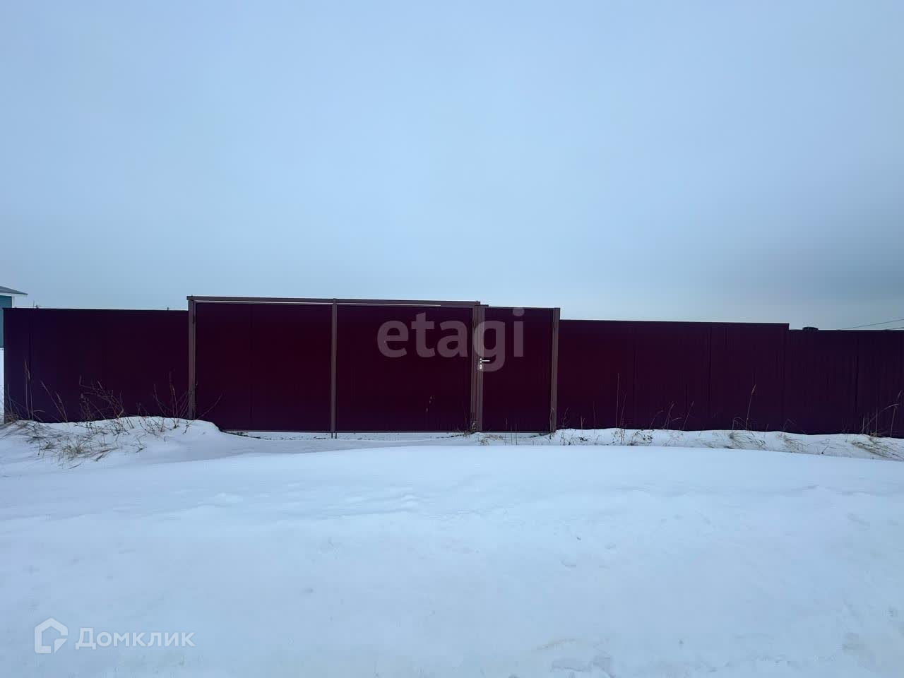 Участок по периметру огорожен металлическим забором.