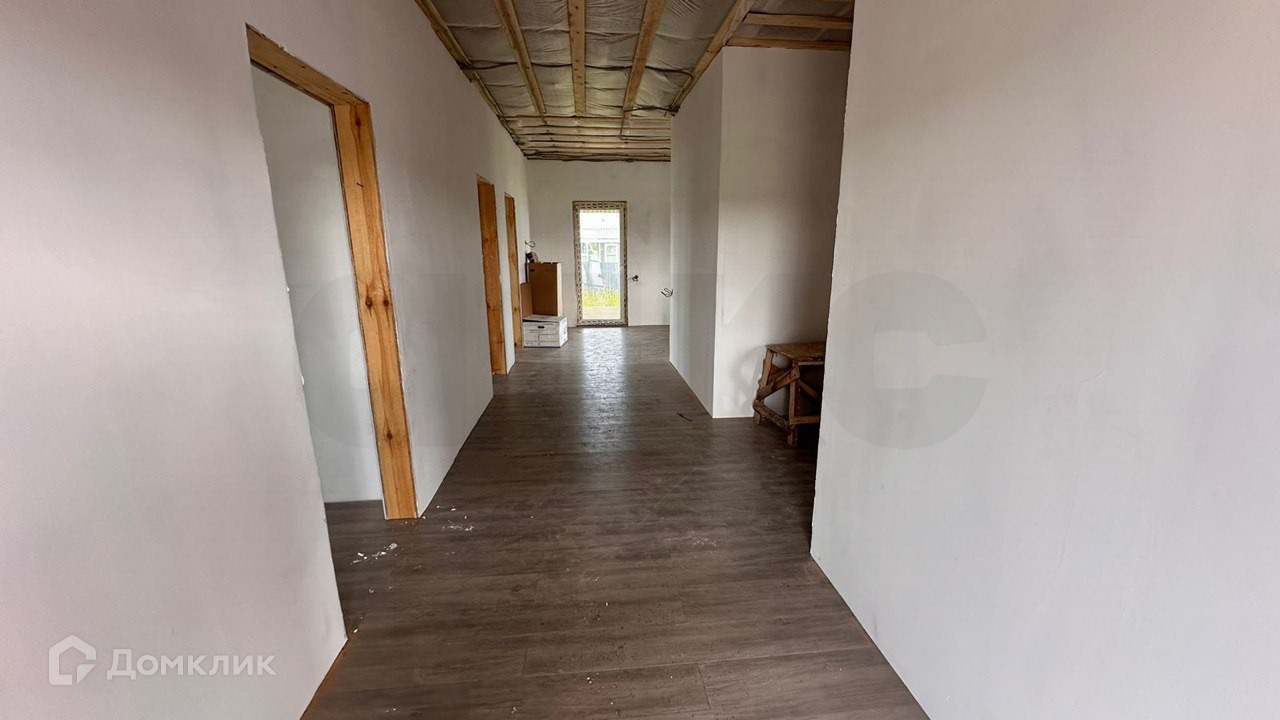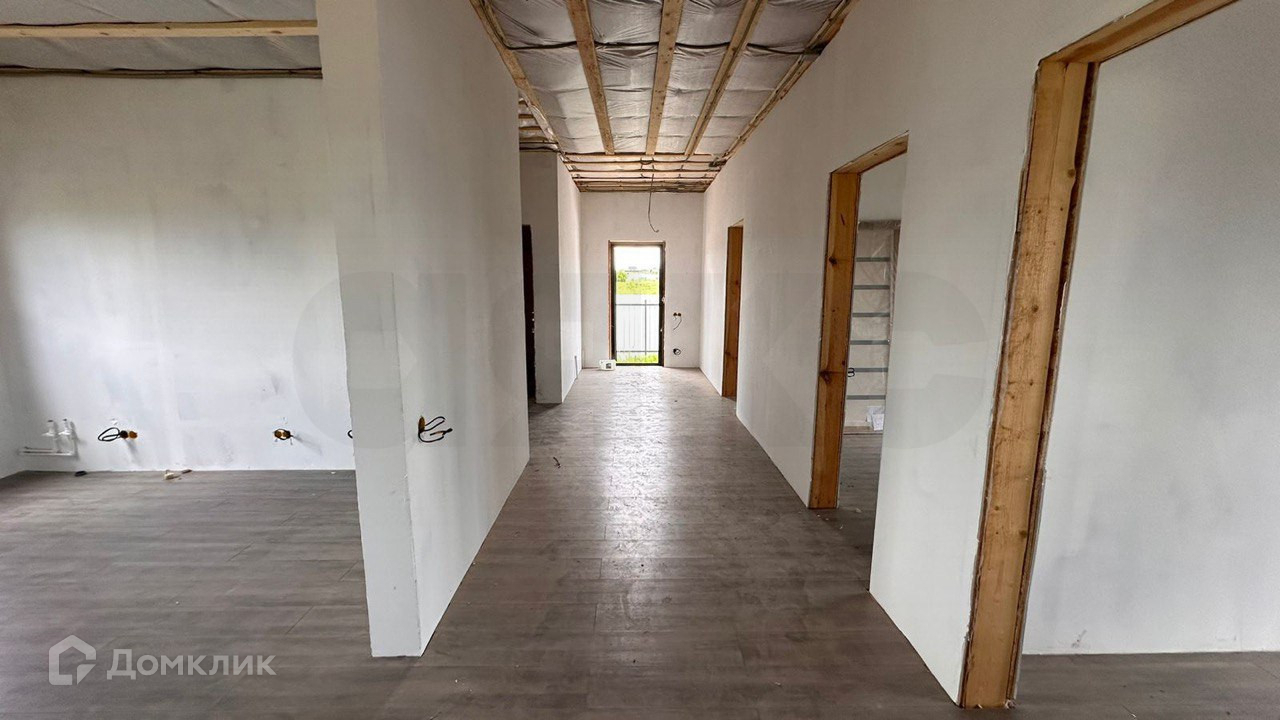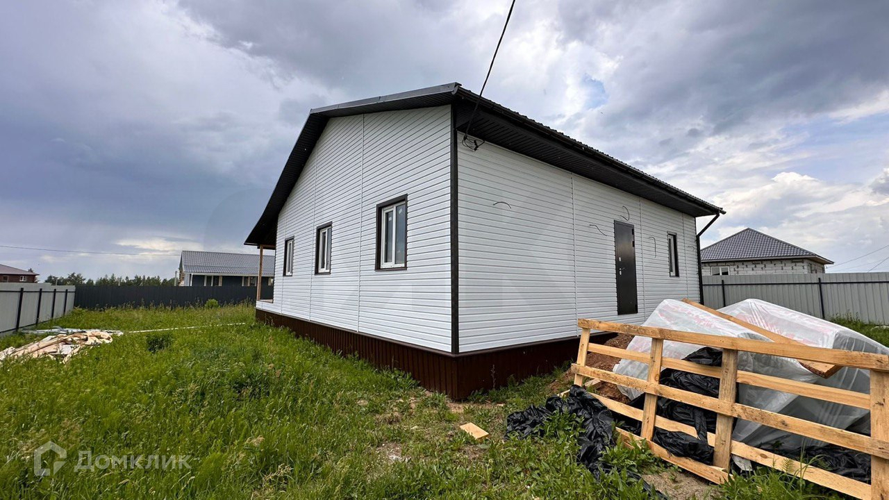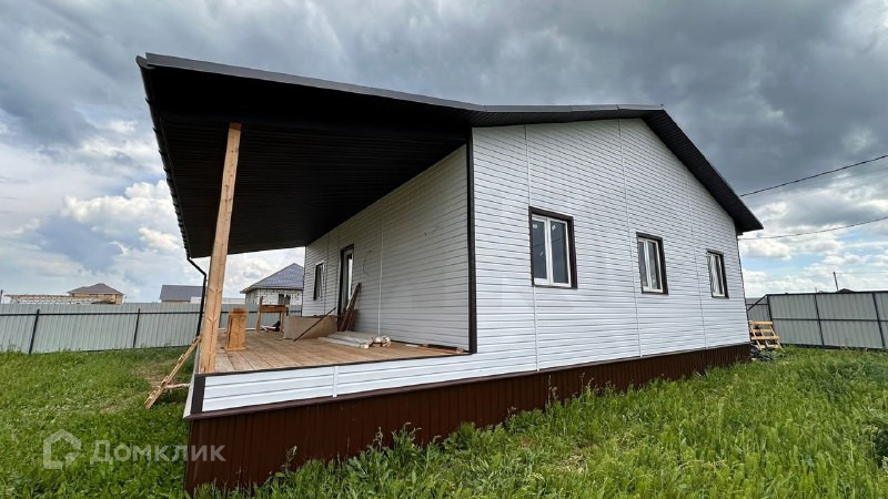Дом одноэтажный, общая площадь 130м.кв., по проекту в доме 3 комнаты, совмещенный санузел, кухня-гостиная, терраса и бойлерная. Снаружи выполнена отделка виниловым сайдингом, кровля - металлочерепица. Внутри выполнена отделка "вайтбокс" натяжные потолки, ламинат, установлены качественные двойные стеклопакеты. В доме очень тепло, отопление электрическое.