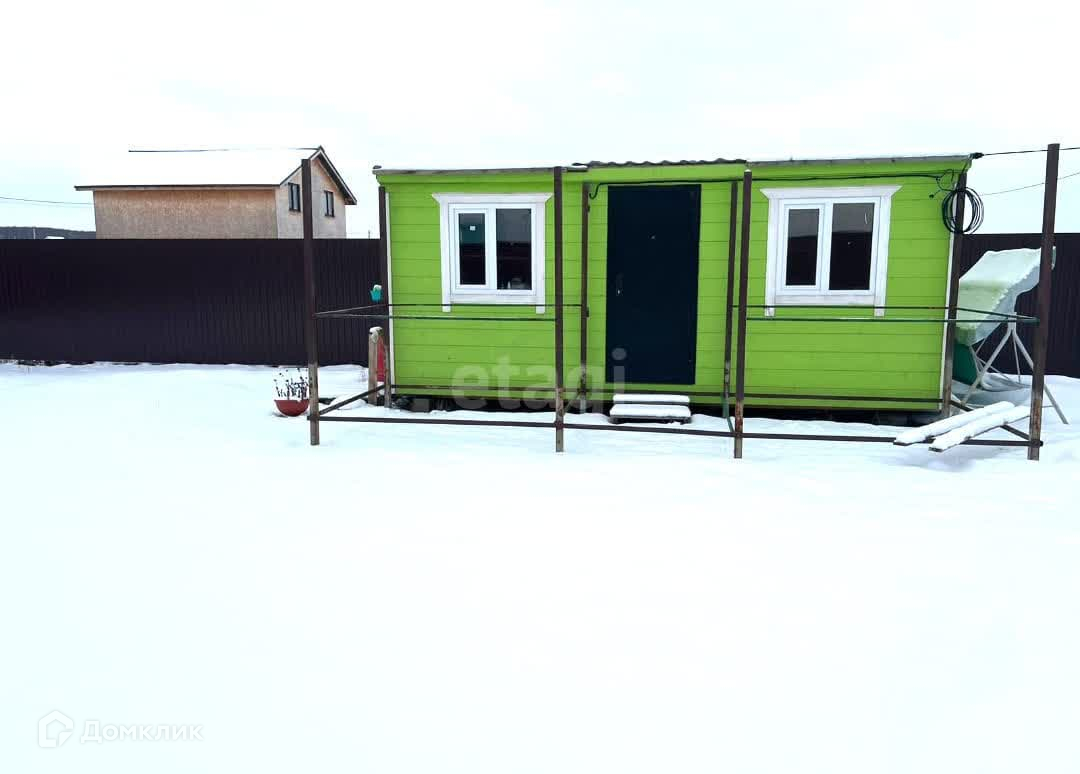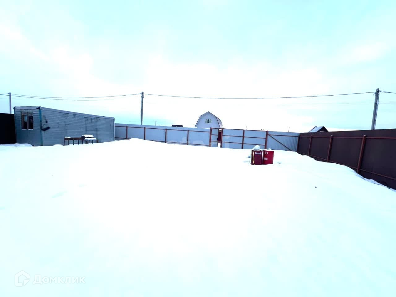 Участок со всех сторон огорожен забором из профлиста. На участке небольшая бытовка 6 на 2.5 с мебелью.
