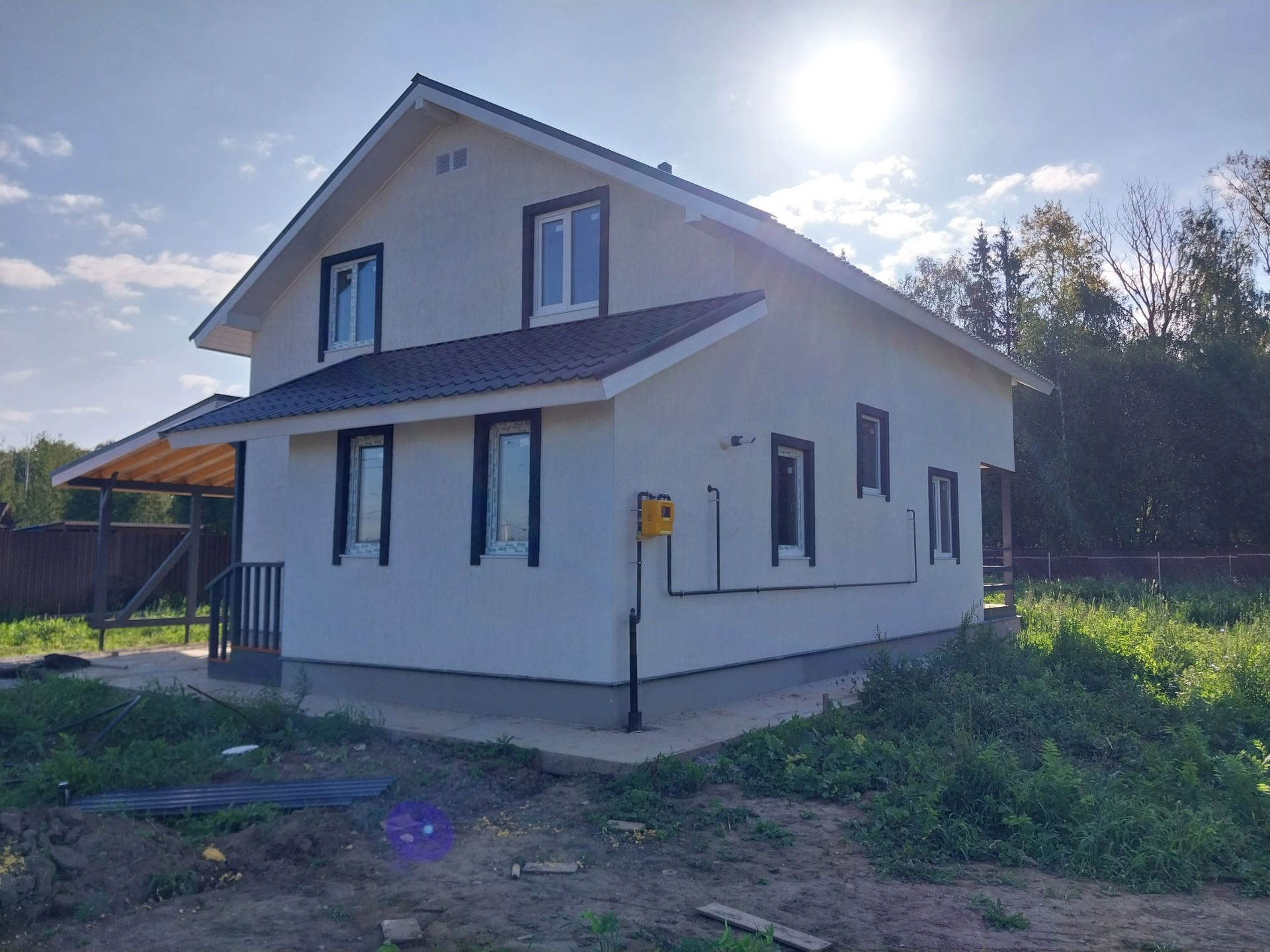 Дом под ключ из газобетона с утеплением, с полной внутренней и внешней отделкой. Подведены все коммуникации (горячая/холодная вода), электричество, котел установлен, канализация выведена в септик и подключена, сантехника установлена.