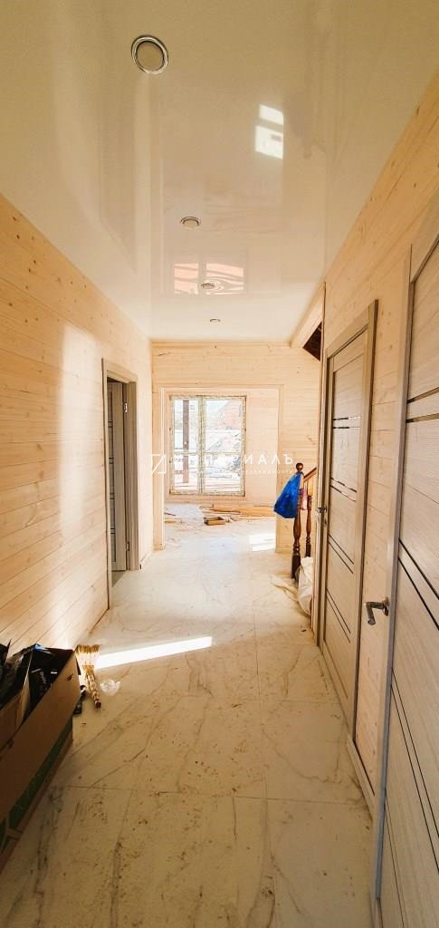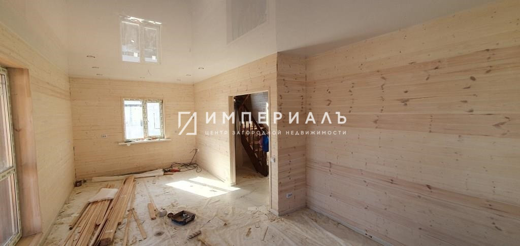 Внутренняя отделка: полы-керамическая плитка+ламинат, стены-имитация бруса, в с/у плитка, потолок натяжной. Установлены межкомнатные двери.