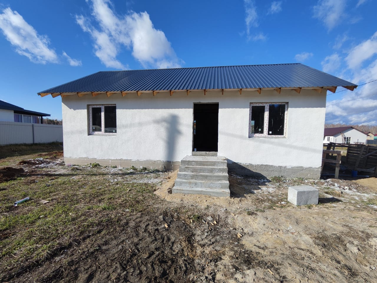 Материал дома - пеноблок - 300мм, штукатурка стен + отделка декоративная штукатурка "Короед"