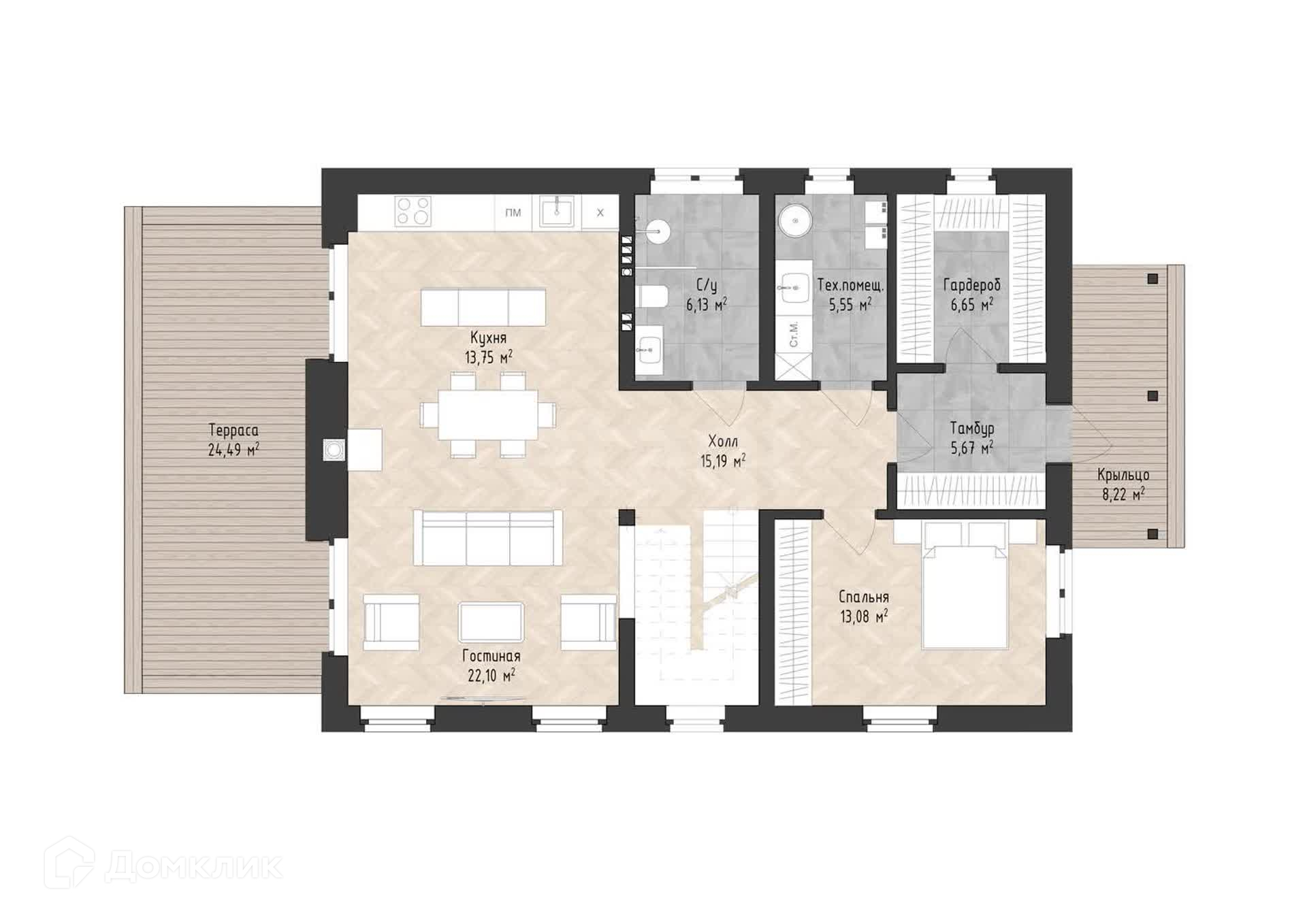 Отделка: Штукатурка, декоративный камень