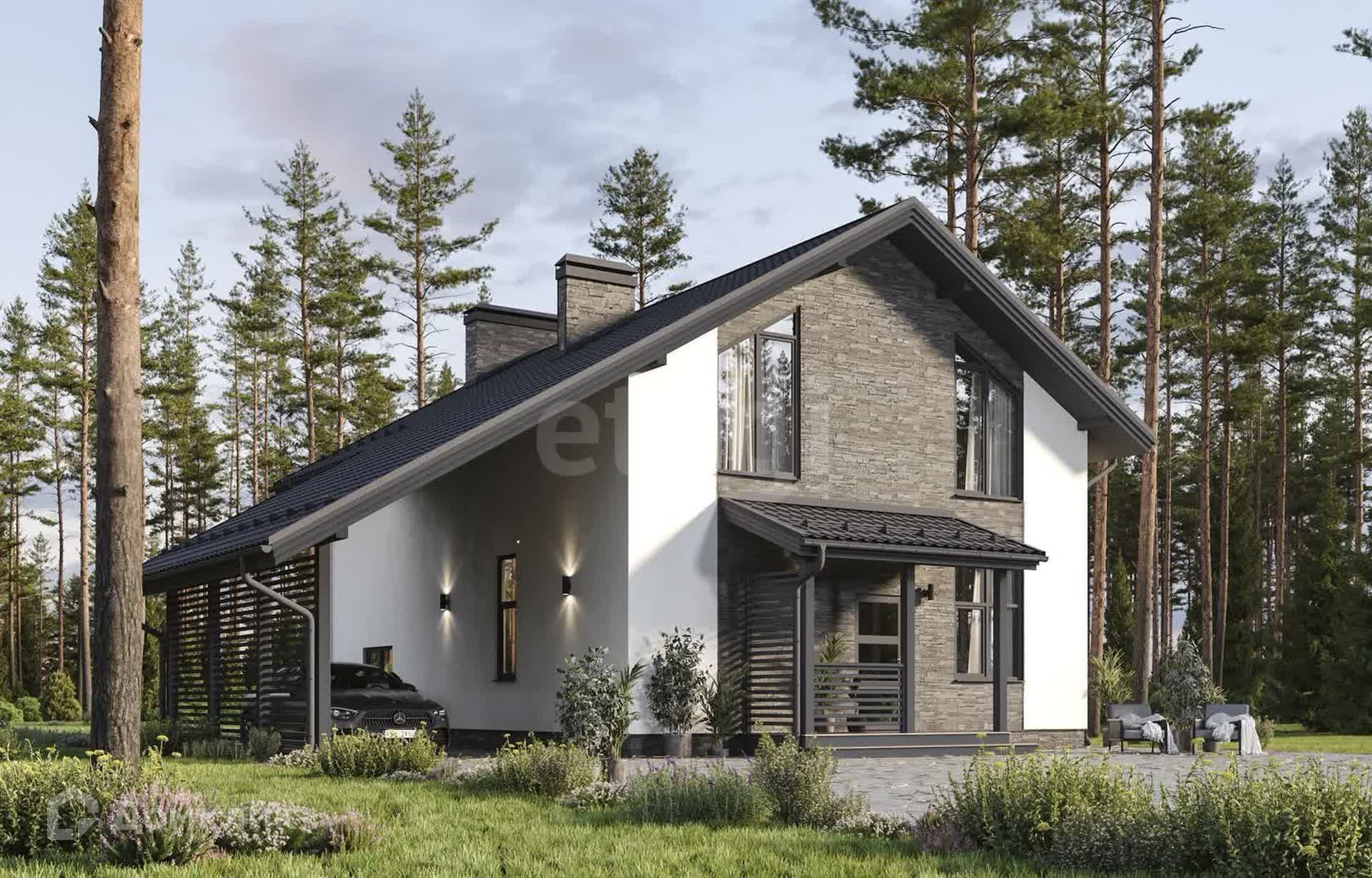 Проект небольшого дома из газобетона можно смело назвать универсальным вариантом загородного жилья. Общая площадь 172м2 и жилая более 100 м2.. Четкие формы фасадов, вертикальные линии оконных переплетов перекликаются с разделением внутренних, детально продуманных, помещений. Универсальность этого дома впечатляет! Возможны варианты строительства дома с открытой или закрытой террасой, с балконом на втором этаже или без него, а так же с большим навесом для автомобиля. Несущие стены: Газобетон