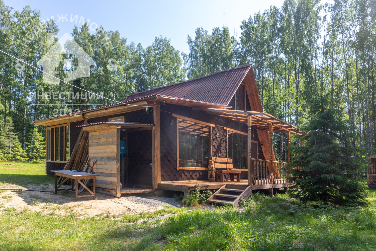 Дом и баня 2021 года постройки, выполнен по технологии каркасного строительства, наиболее подходящий с учетом климата и ландшафта участка. 104 км от г. Петрозаводска.