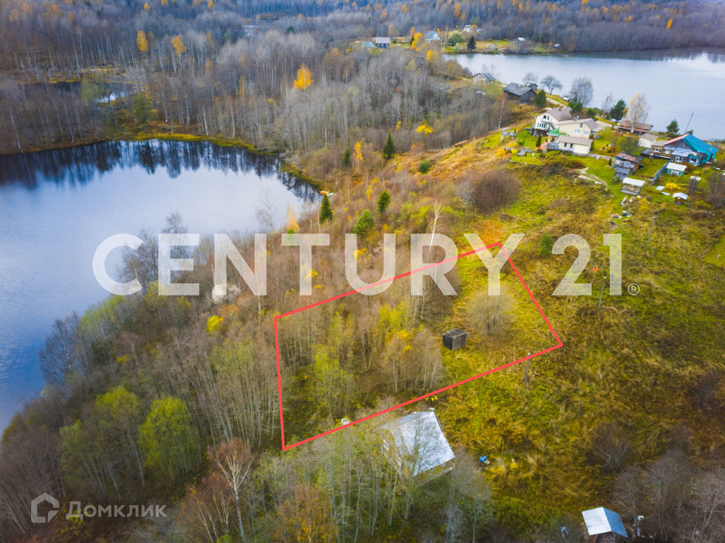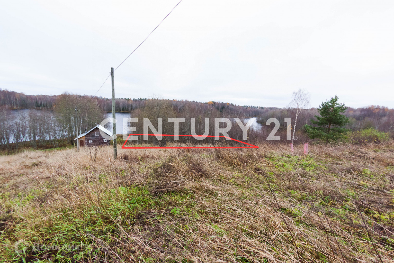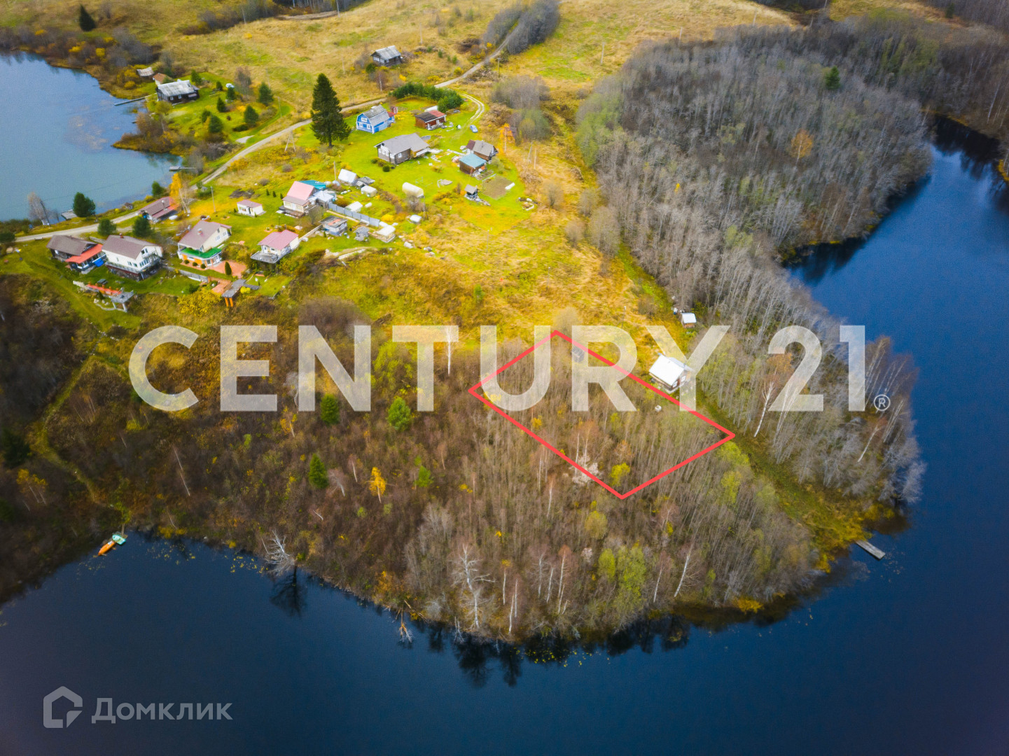 на границе участков очищен от деревьев подход к озеру.
