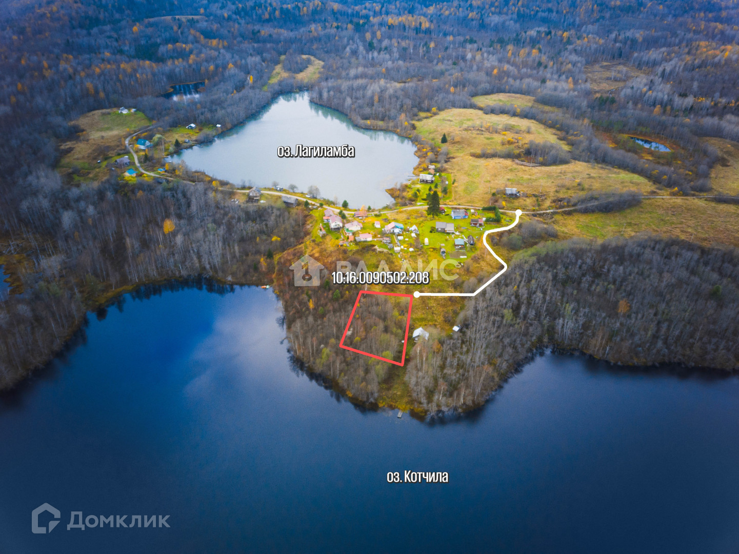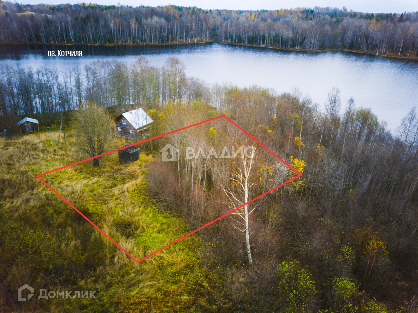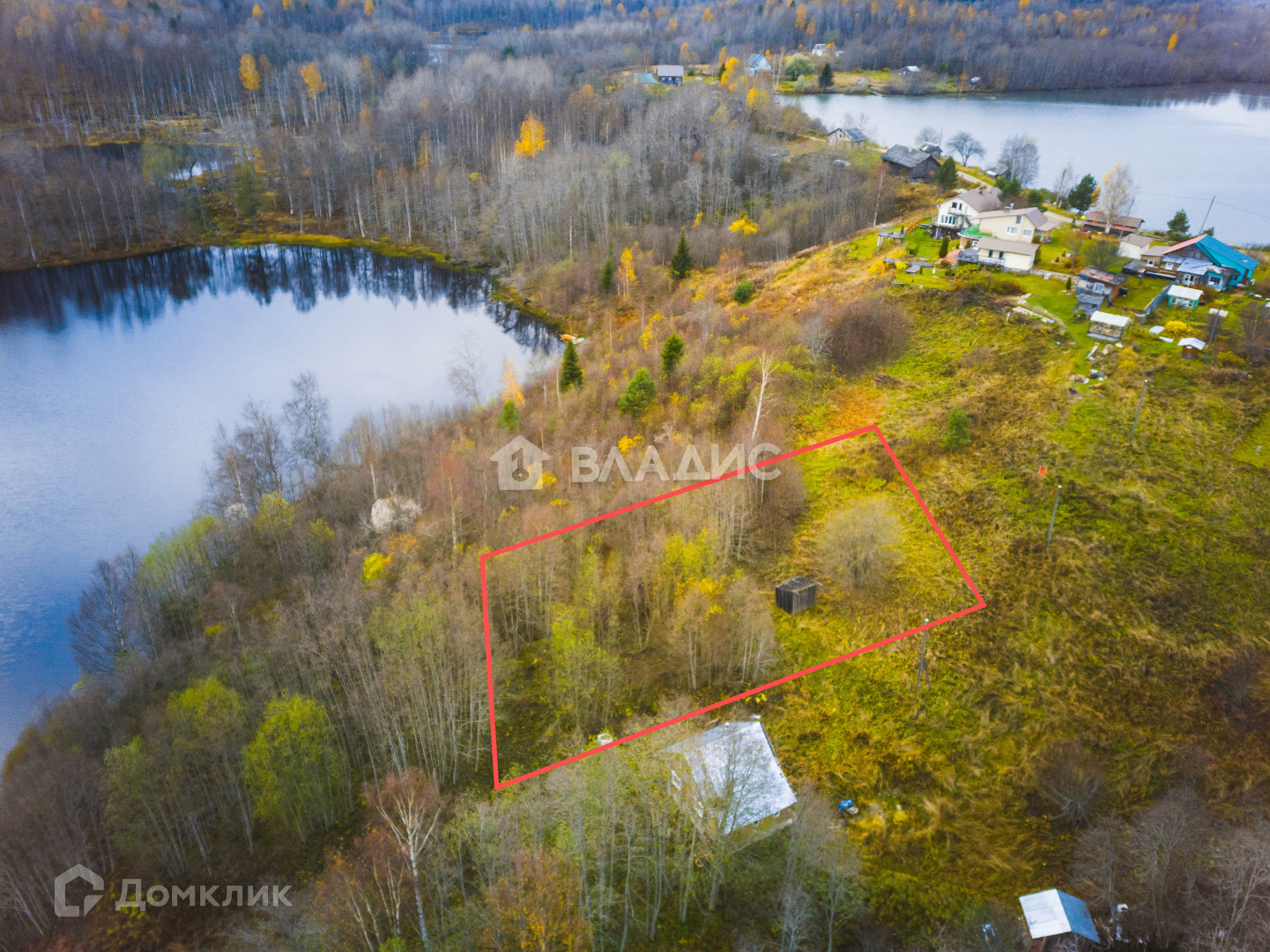 на границе участков очищен от деревьев подход к озеру.