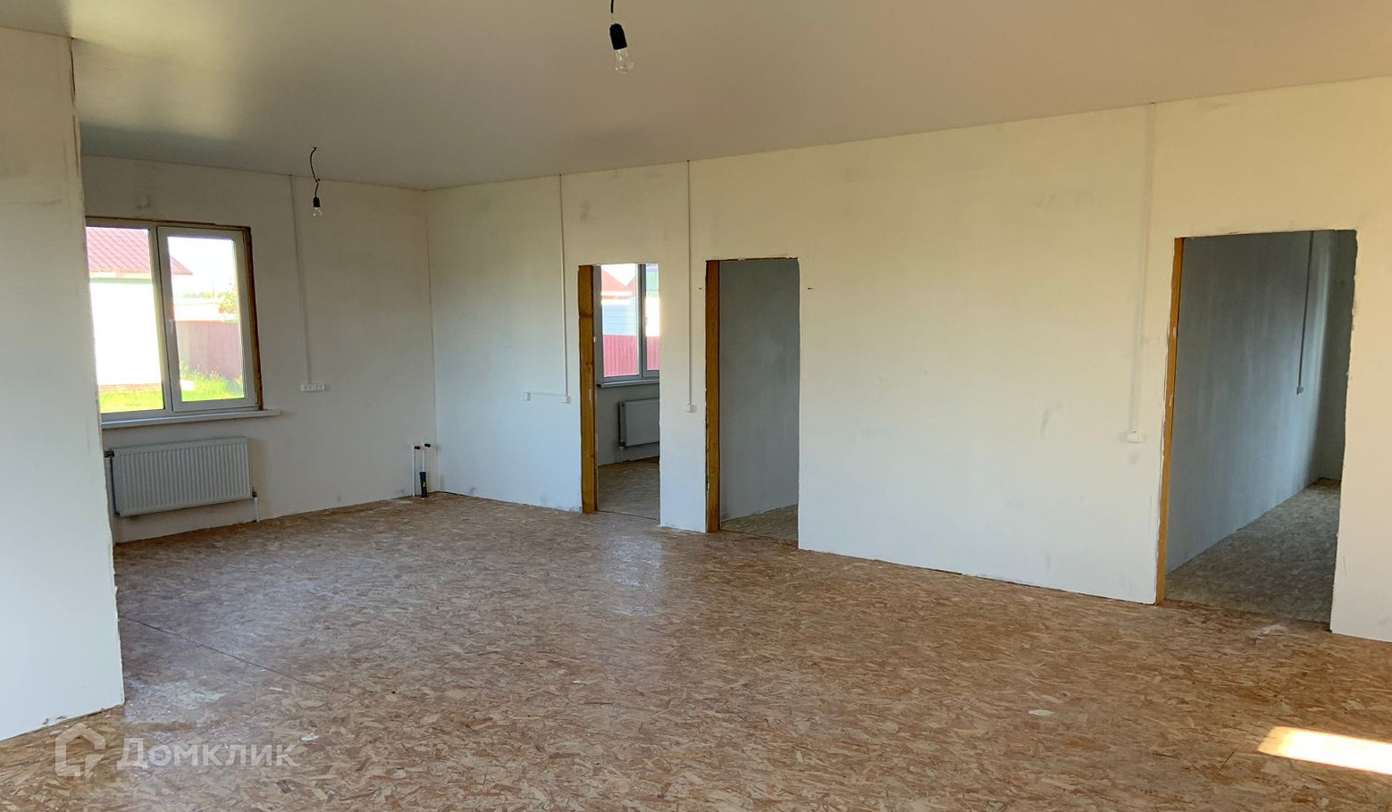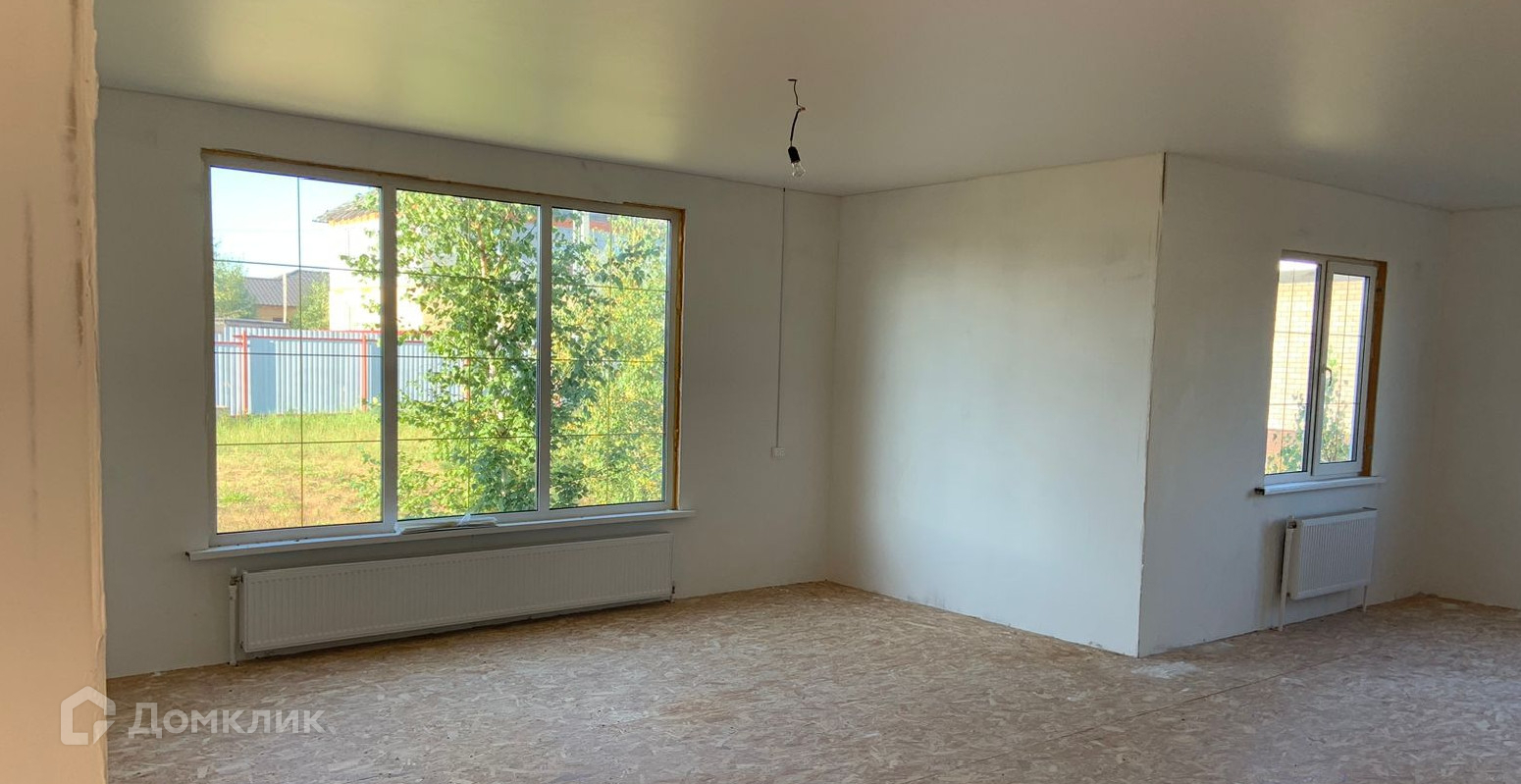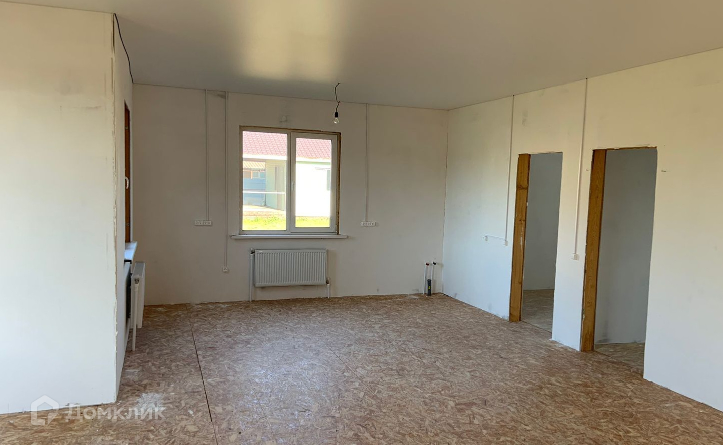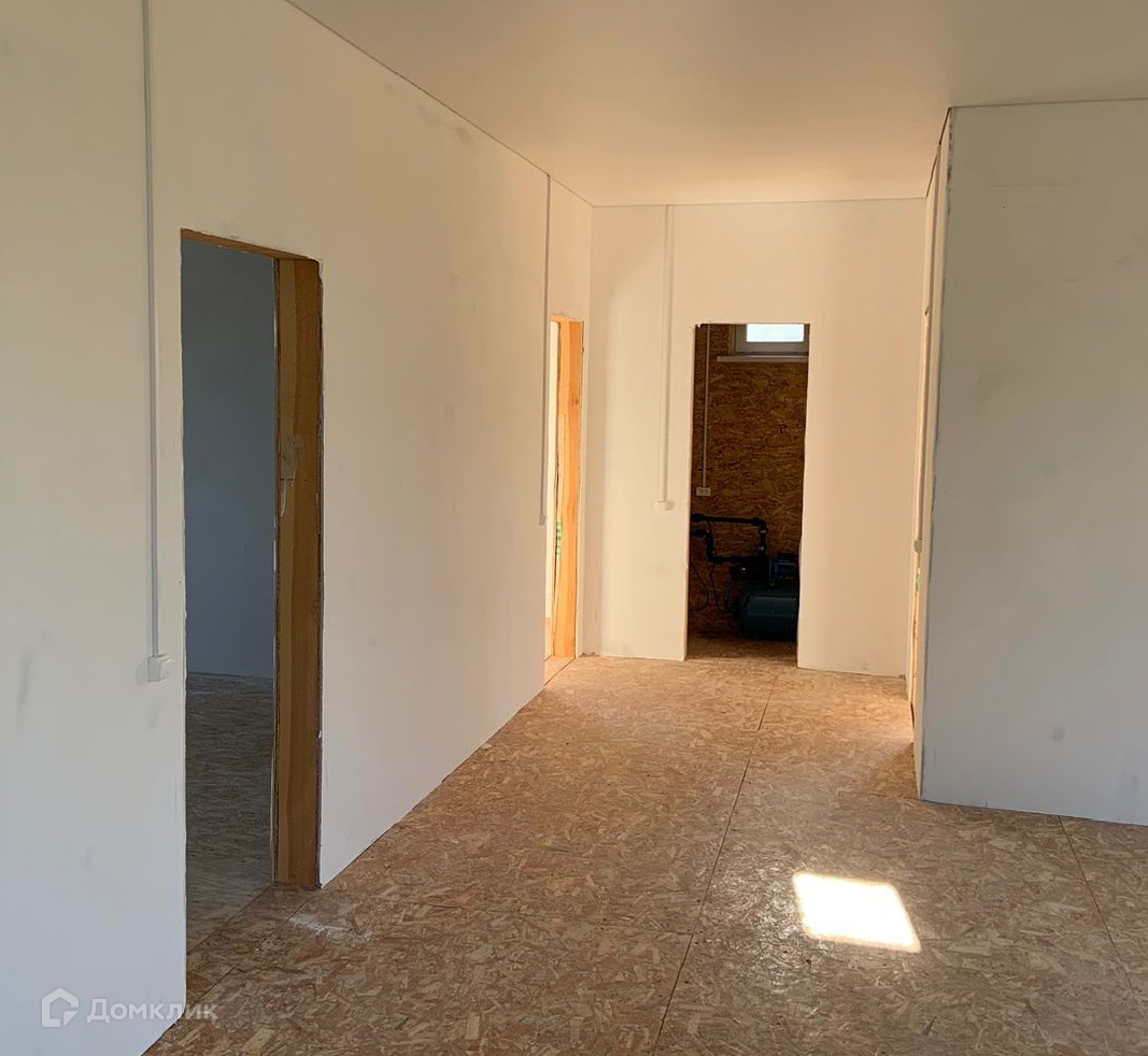Каркасный на сваях. Одноэтажный. С утеплением. Год постройки 2024 г. Большие и светлые комнаты, благодаря панорамным окнам. Все инженерные коммуникации подключены: электричество 15 кВт разведено по всему дому с розетками, разведено отопление с радиаторами, в санузлах готово отведение воды и каналиции. Во всех помещениях уже есть натяжной потолок. Вам остается установить сантехнику, украсить стены( обои или декоративная штукатурка), застелить пол( керамогранит, кварцвинил или ламинат).
