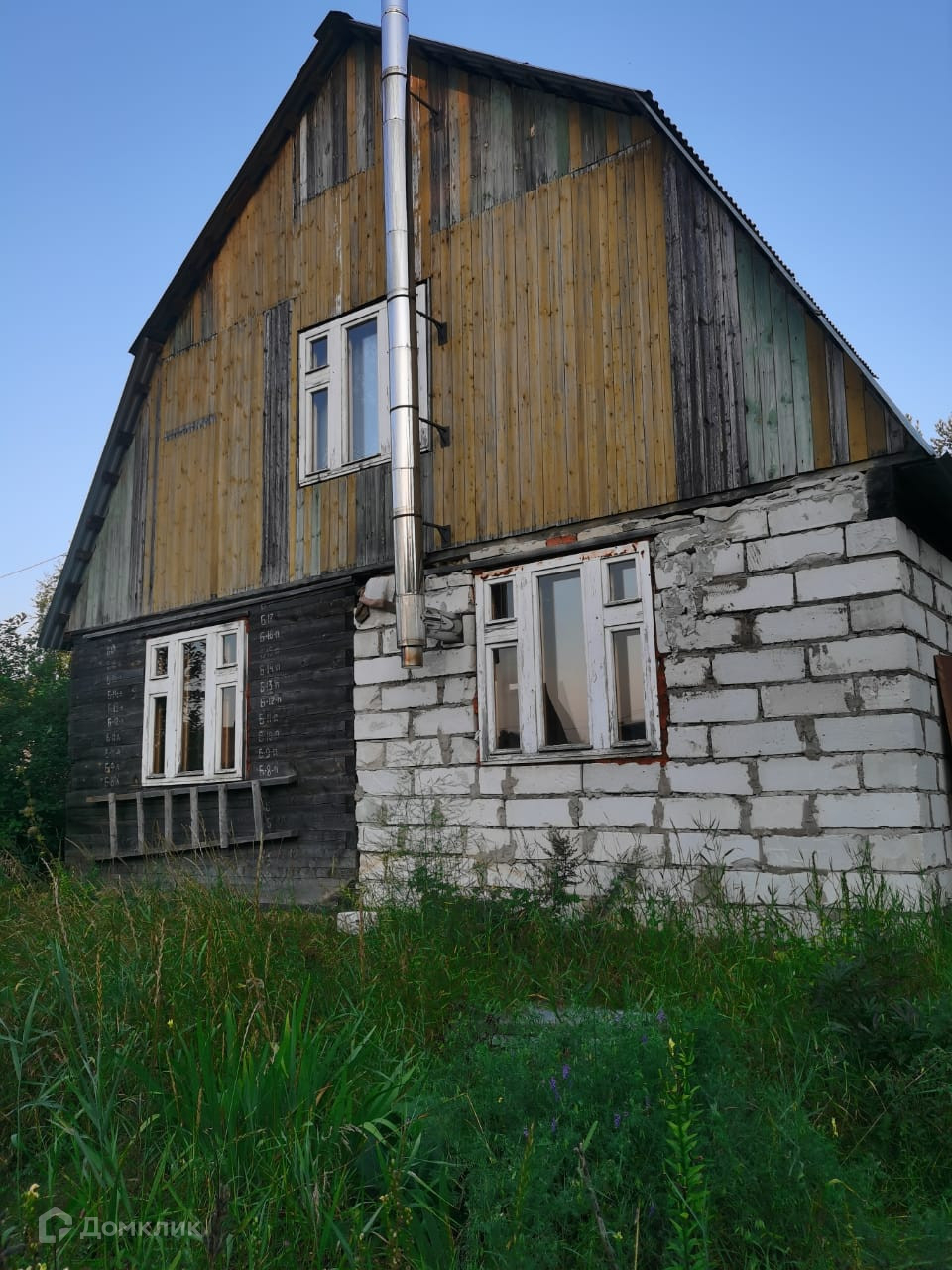 ДОМ добротный, первый этаж построен из бревна и газоблоков,  второй из досок. Внутри утеплитель, обшит вагонкой. Установлена кирпичная печь, труба выведена с первого этажа. Отапливается дровами или брикетами. Второй этаж не утеплен используется летом как спальня. Установлены деревянные евроокна, межкомнатные двери, лестница на второй этаж выполнена в резном стиле, В дом проведена вода (в колодце установлен электронасос). Использовать можно круглосуточно.