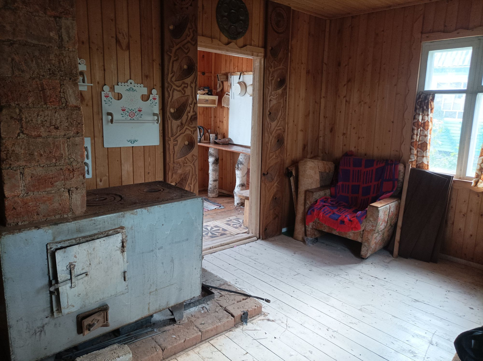 СНТ Земляничка 2 пр.,уч.37, 3-я остановка Максаковских дач. Дом в хорошем состоянии, крепкий, на бетонном фундаменте. уютный, оригинальная отделка, печное отопление, электричество. Участок ровный, сухой. Земля несколько лет не обрабатывалась.Хозпостройки. На участке много кустов смородины, малины и т. д., великолепная лиственница. Соседи живут круглогодично, проезд чистится