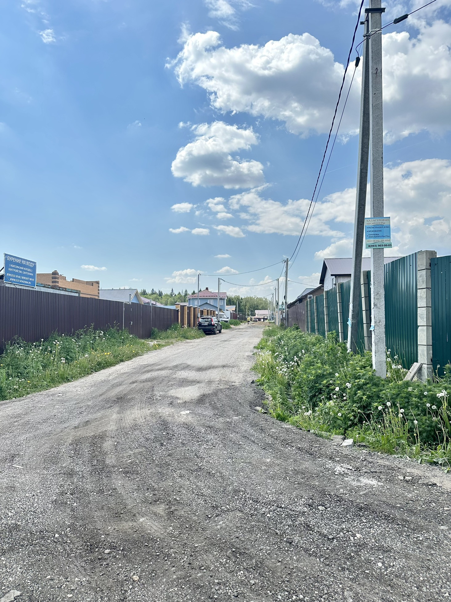 Отдельный асфальтированный подъезд к поселку. Живописное место, вокруг деревни лесной массив, вблизи река Камшиловка, рядом автобусная остановка с транспортом до Москвы и до города Щелково, в пешей доступности магазин.