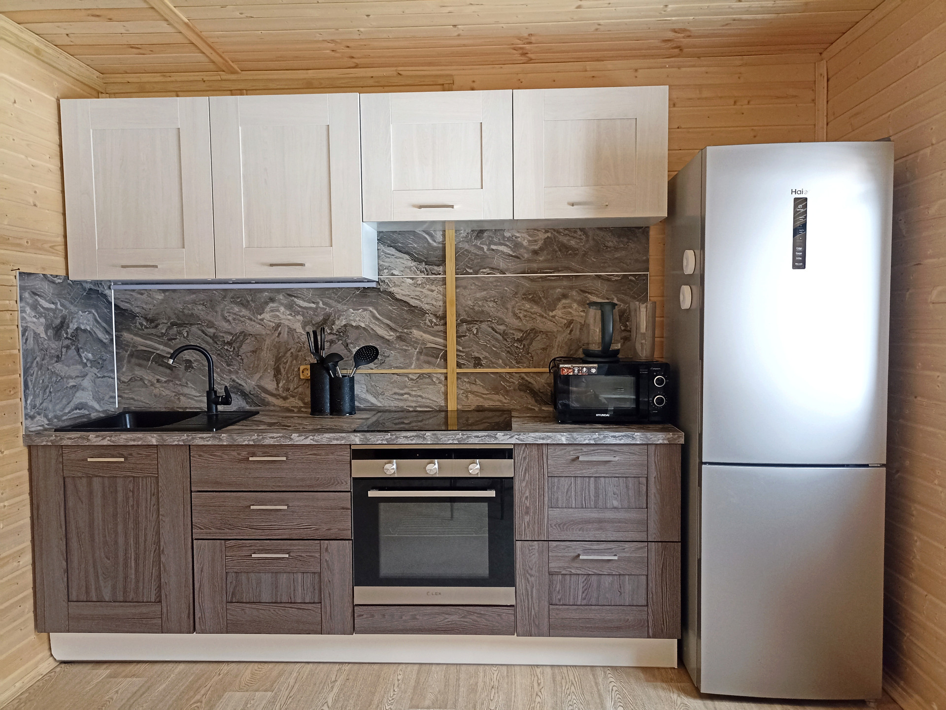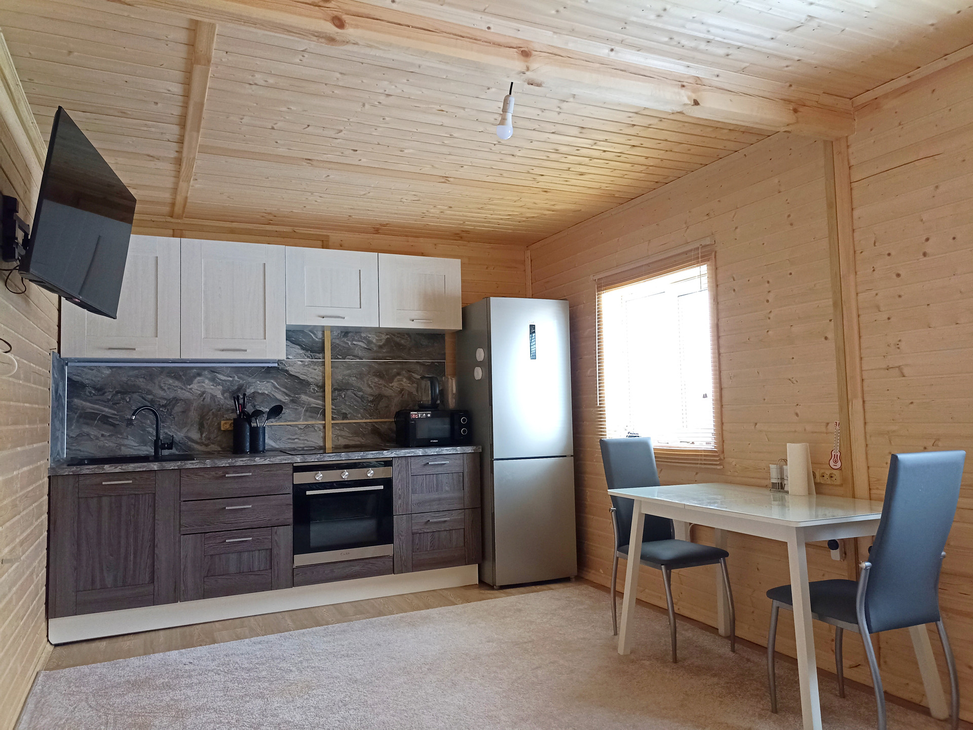 Дом светлый, полностью укомплектован новой современной техникой и мебелью: кухня-гостиная, ванная, спальная комната, кладовые помещения.