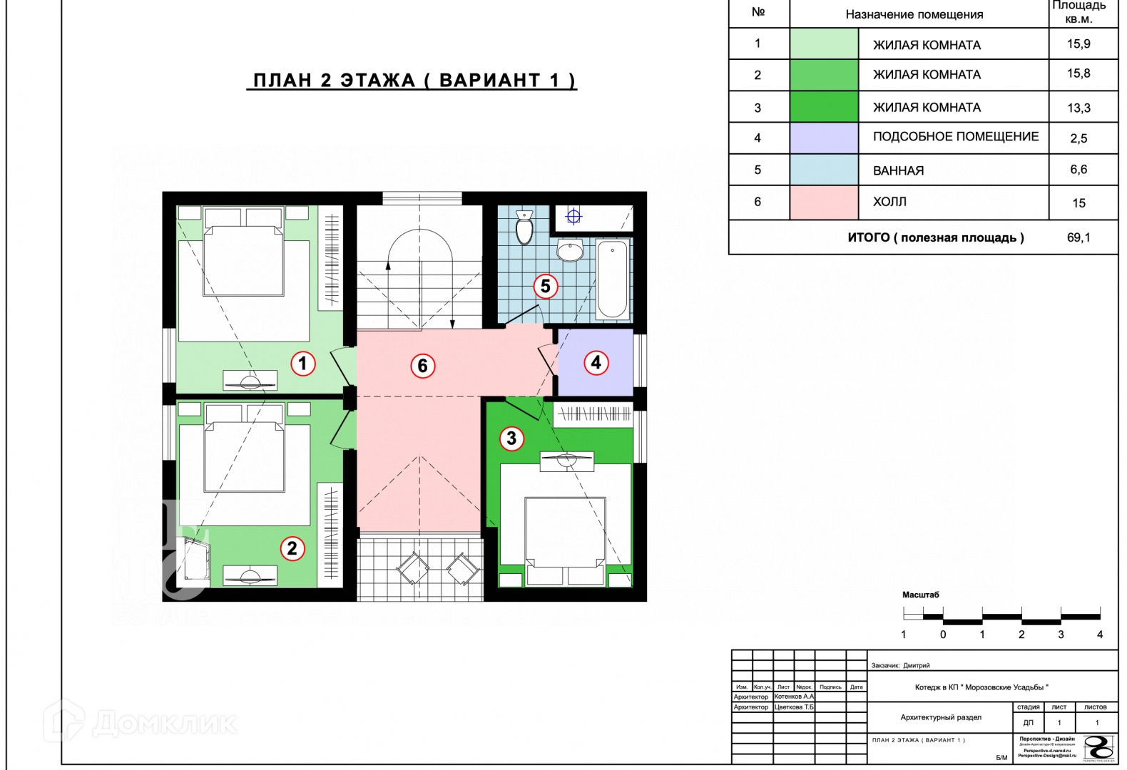 Второй этаж: 3 спальни, ванная комната.
