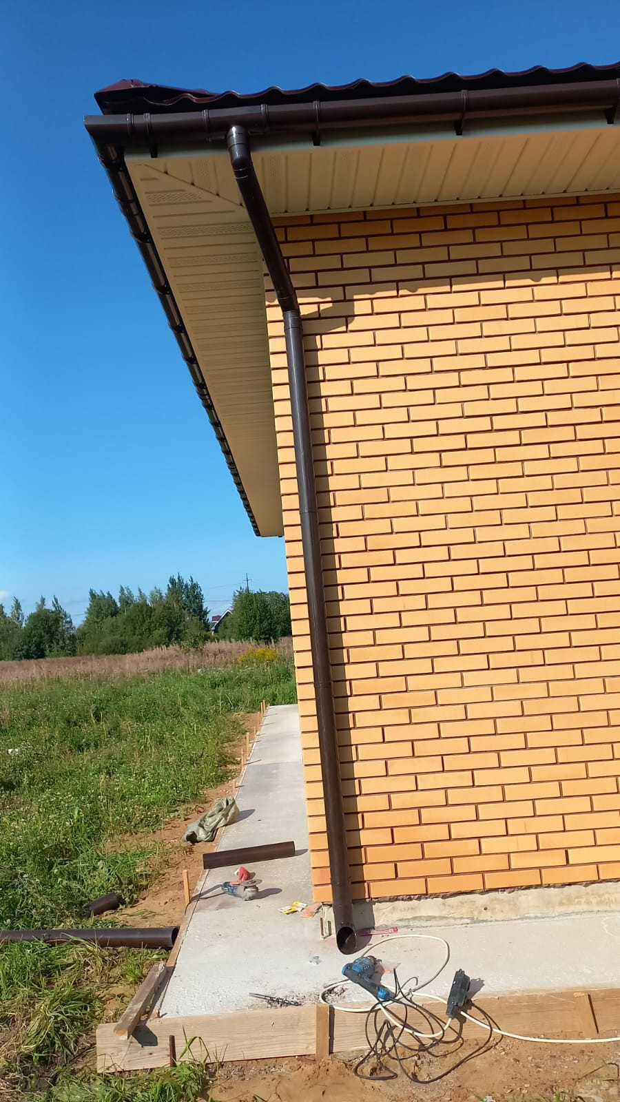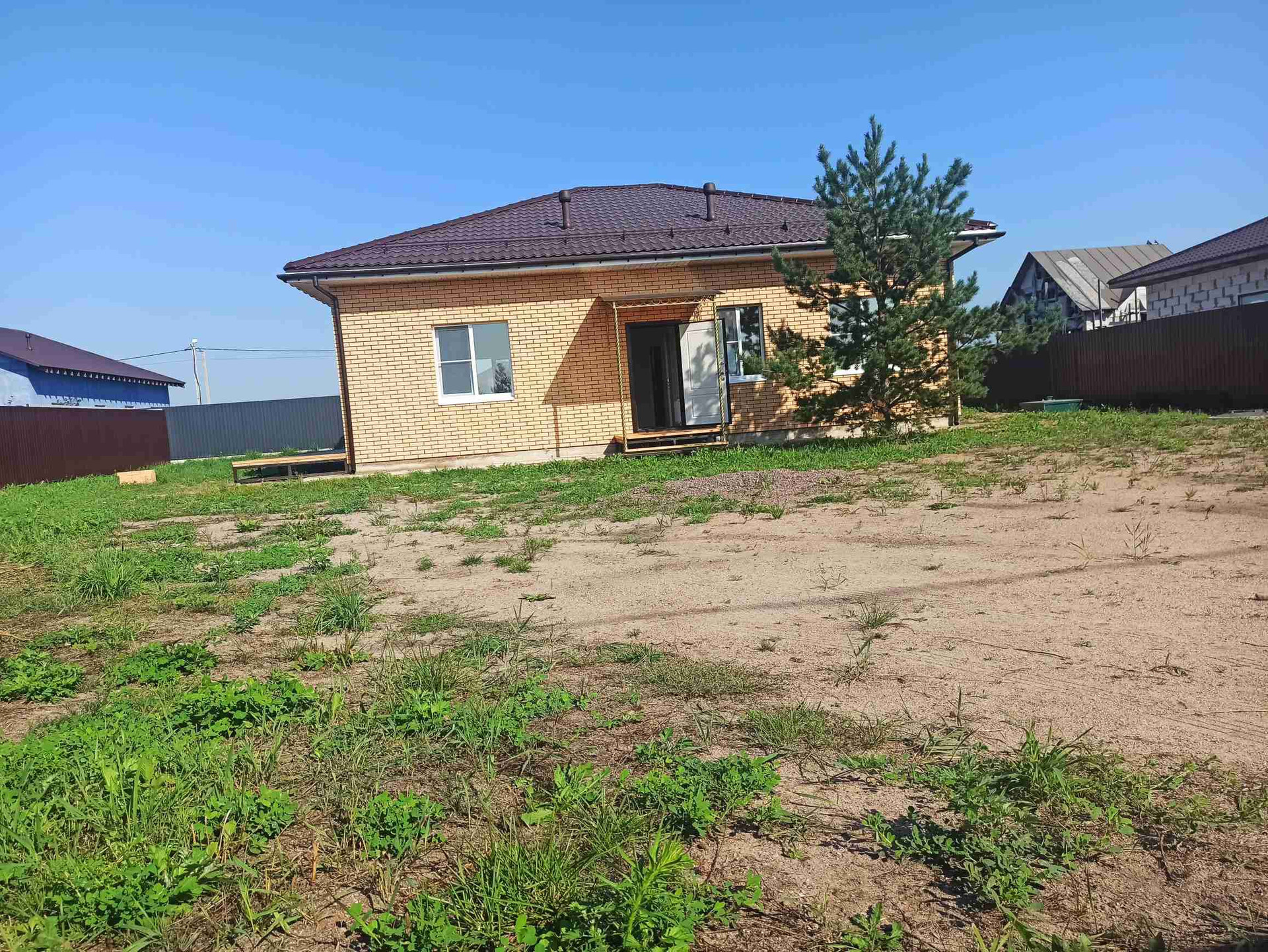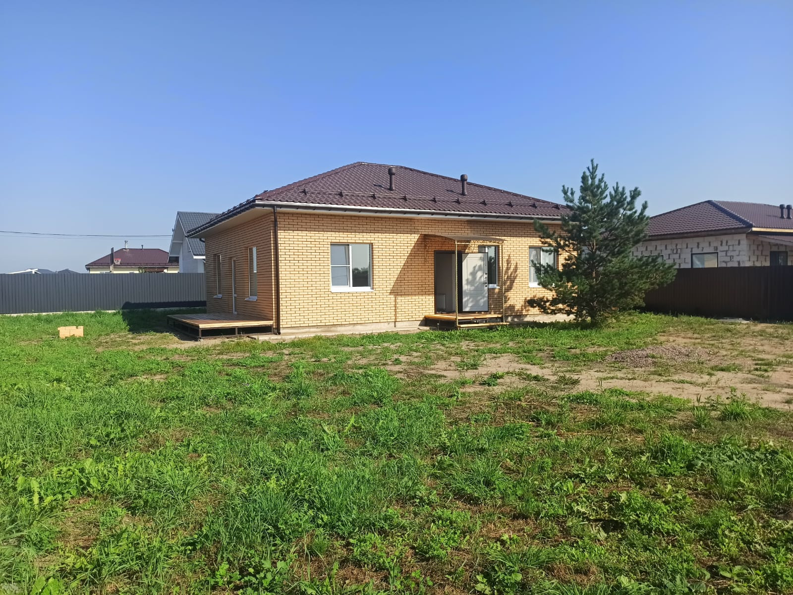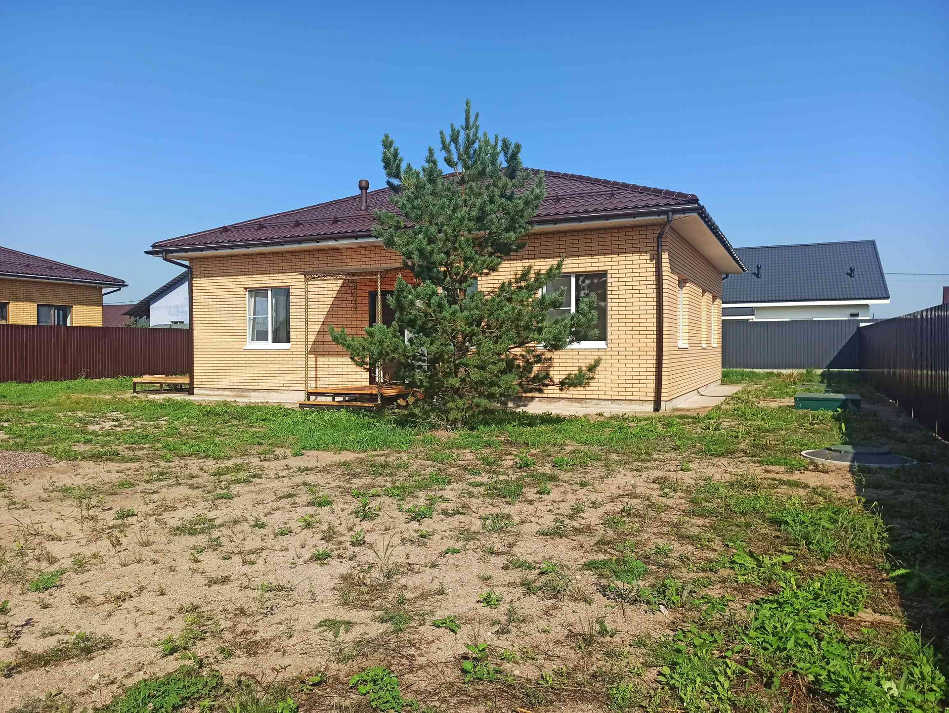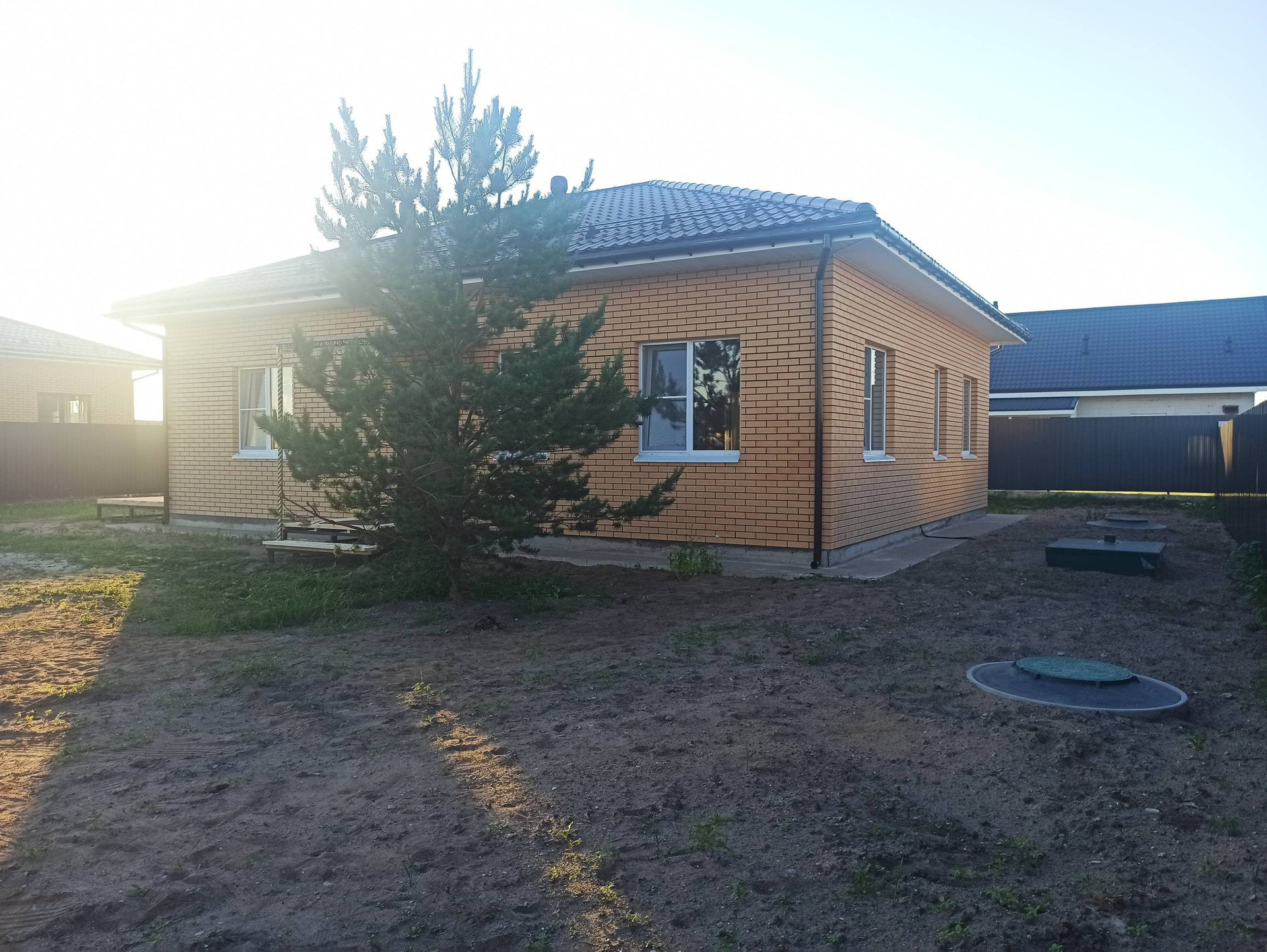В стоимость входит коробка дома с наружной отделкой, окна, двери , скважина, дренаж по всему участку .