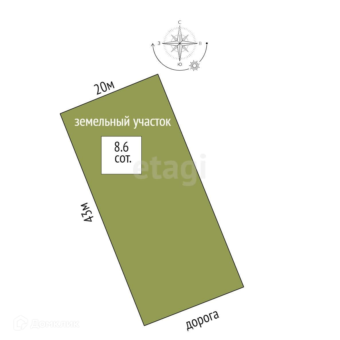 Площадь участка 8.6 сот.