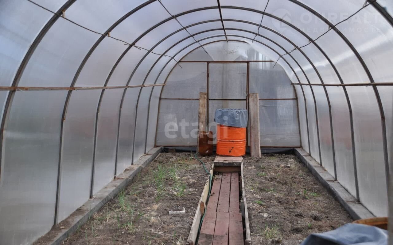 На участке расположены 2 большие теплицы (там можно посадить огурцы, помидоры, потисоны и другие витаминизированные овощи), есть грядки клубники, разнообразной зелени, кусты смородины. Из построек: большой сарай, маленький курятник, беседка для посиделок с друзьями, фонтан перед террасой дома, туалет.