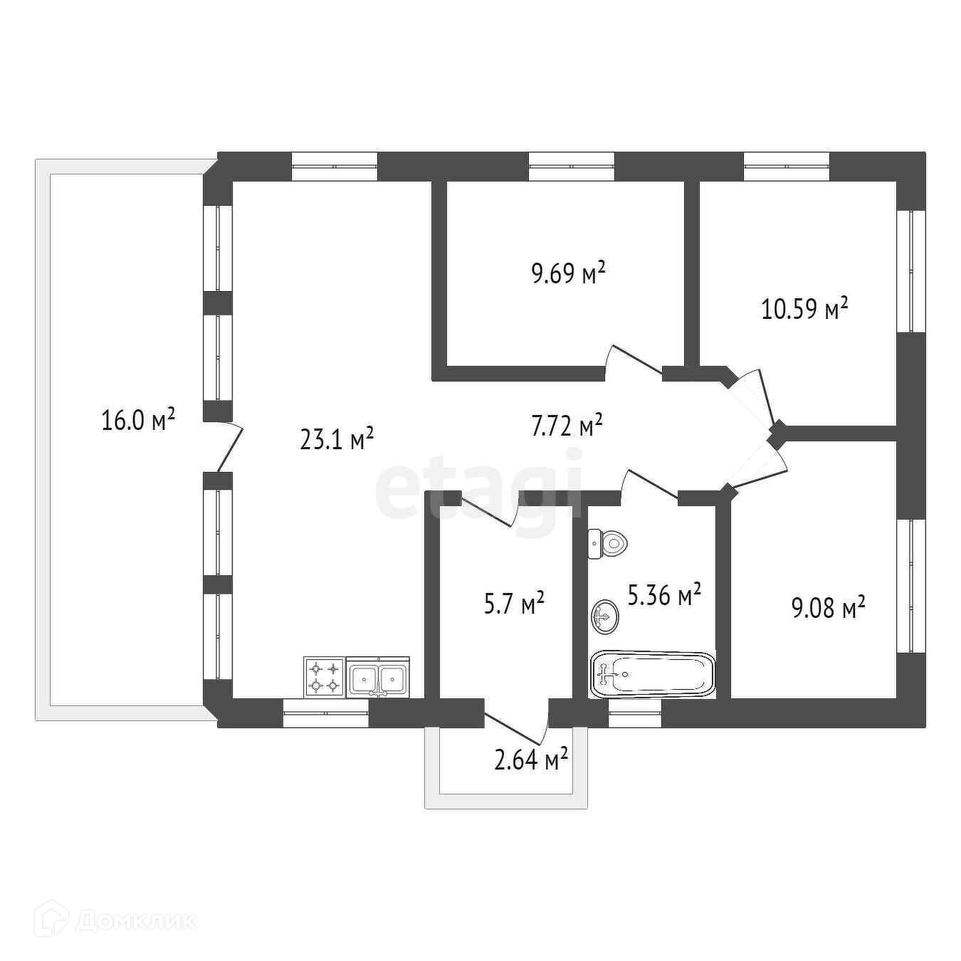 Общая площадь 89 м2