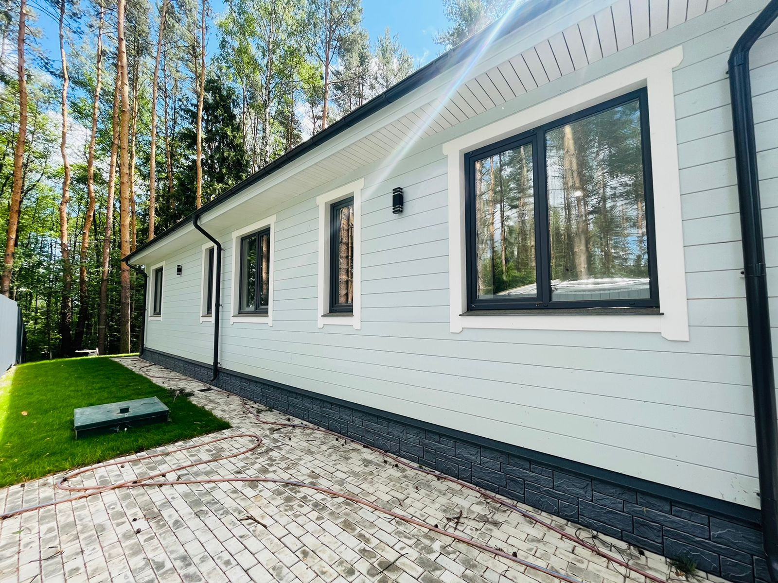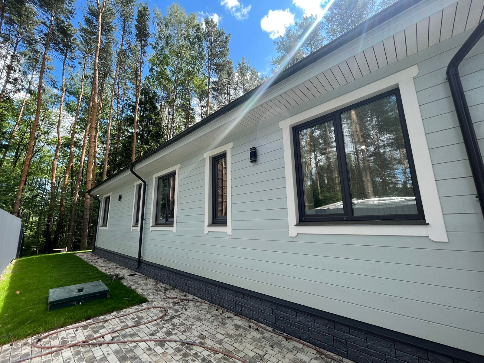 Водослив, станция полной очистки ( канализация). Дом полностью готов к проживанию.  Выполнен из премиальных материалов, построен с любовью для себя.