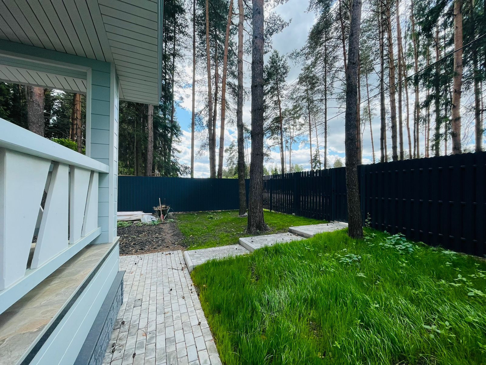 Территория облагорожена, плитка, газон.