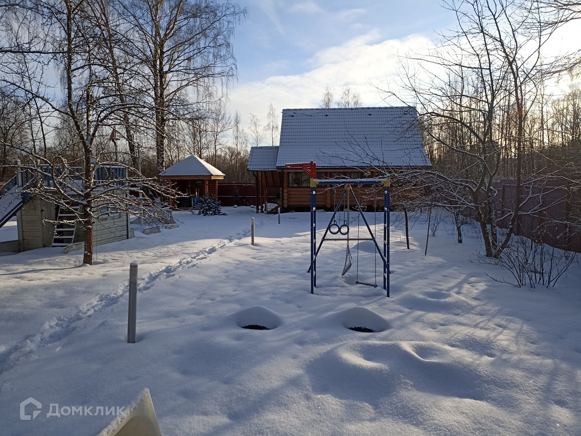 На территории участка проведено освещение, оформлены дорожки и детская зона - спортивная площадка, песочница, горка и кладовка под велики. Перед воротами и на участке сделан дренаж, имеется площадка, мангал, дровница.