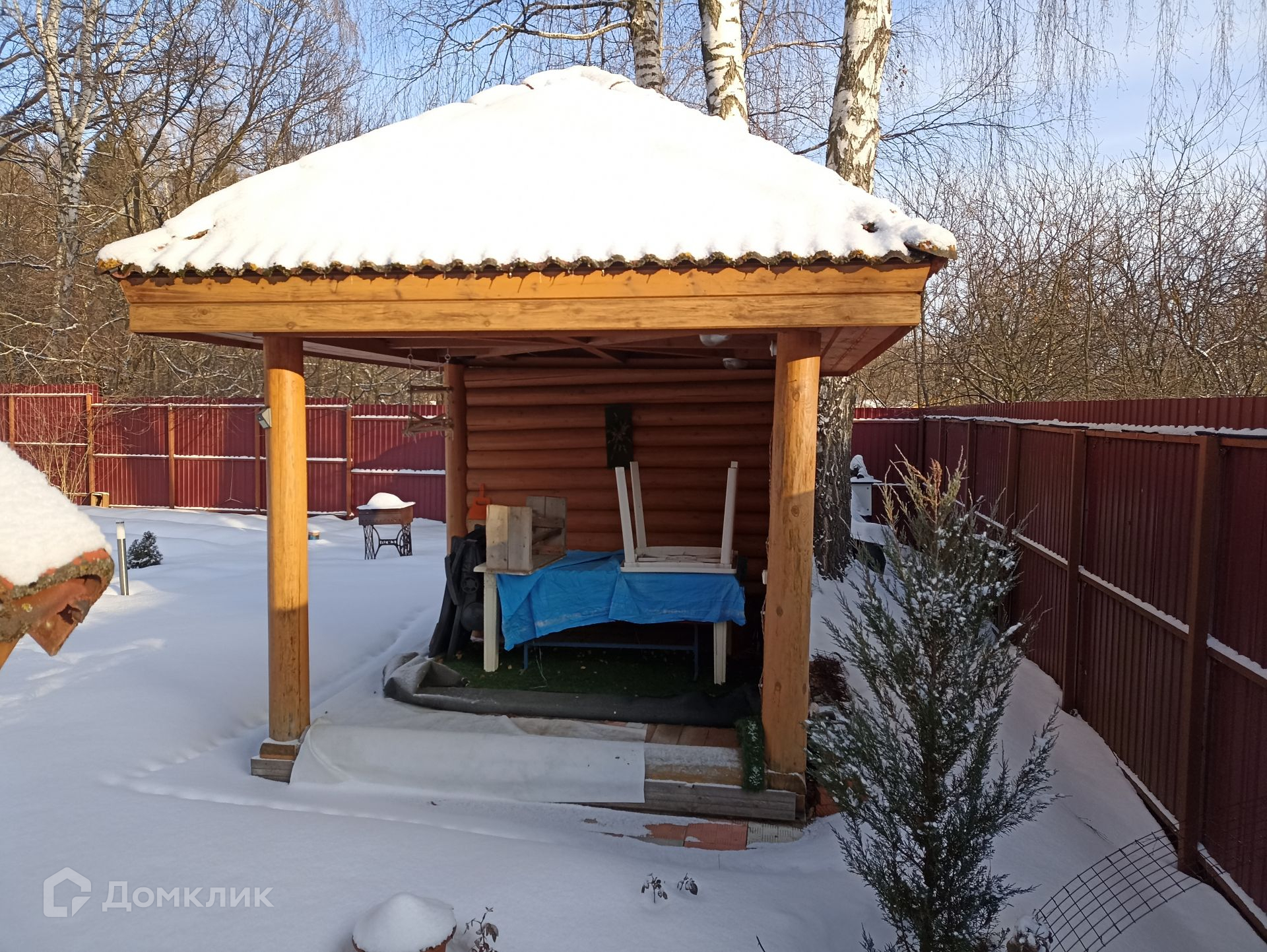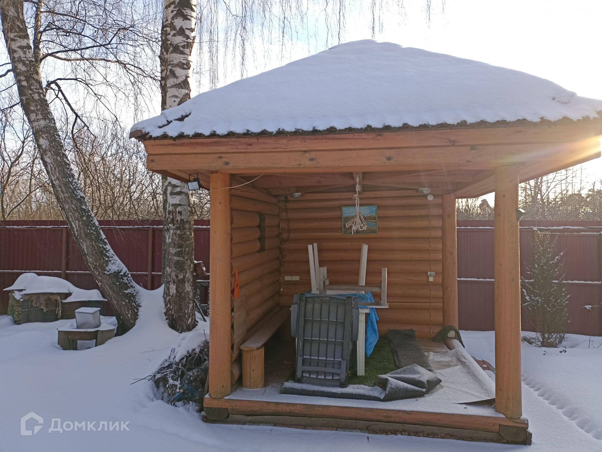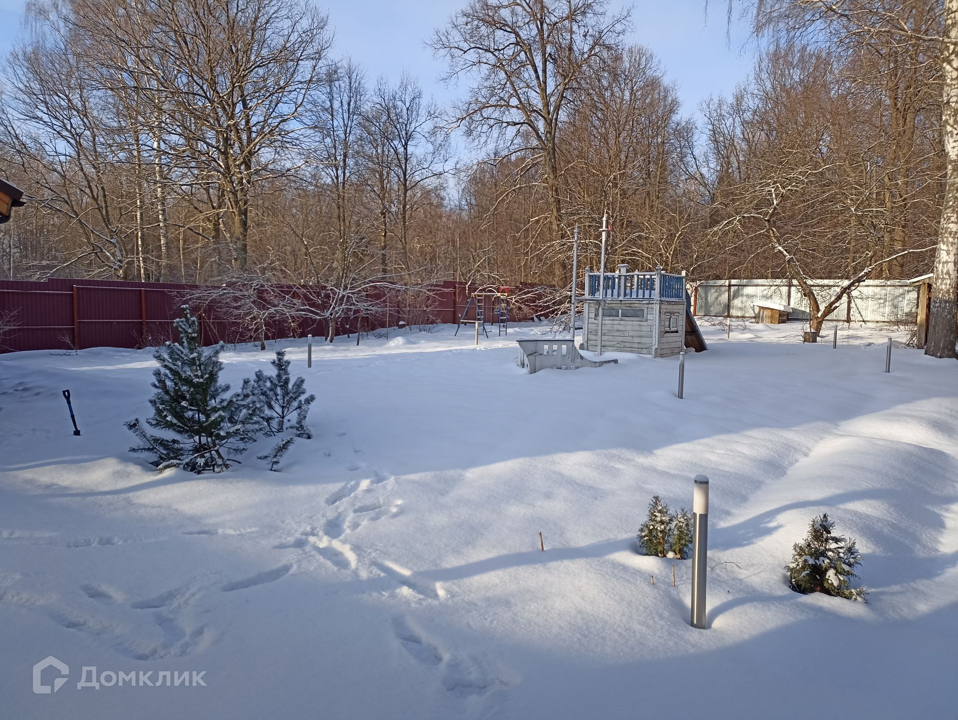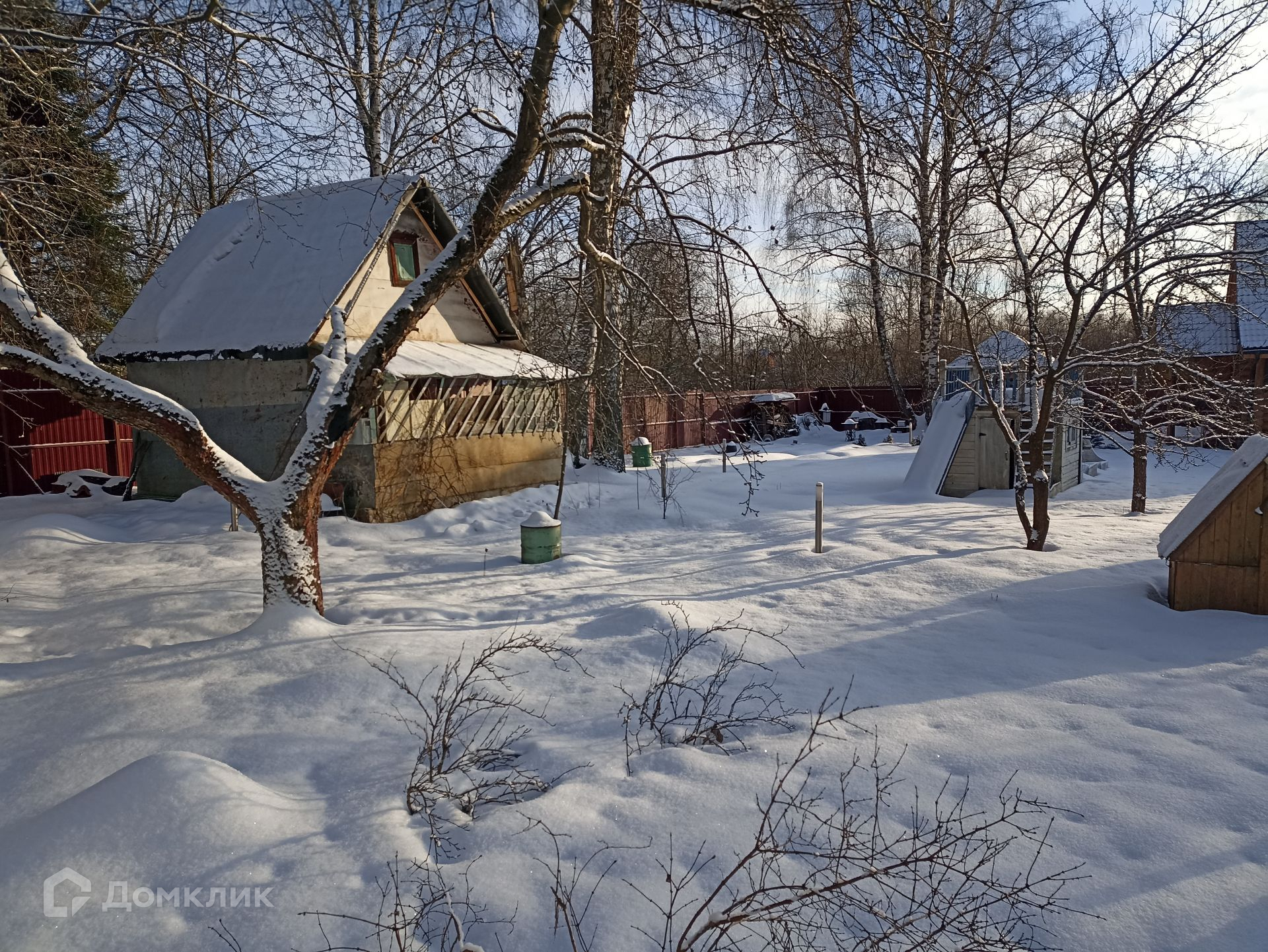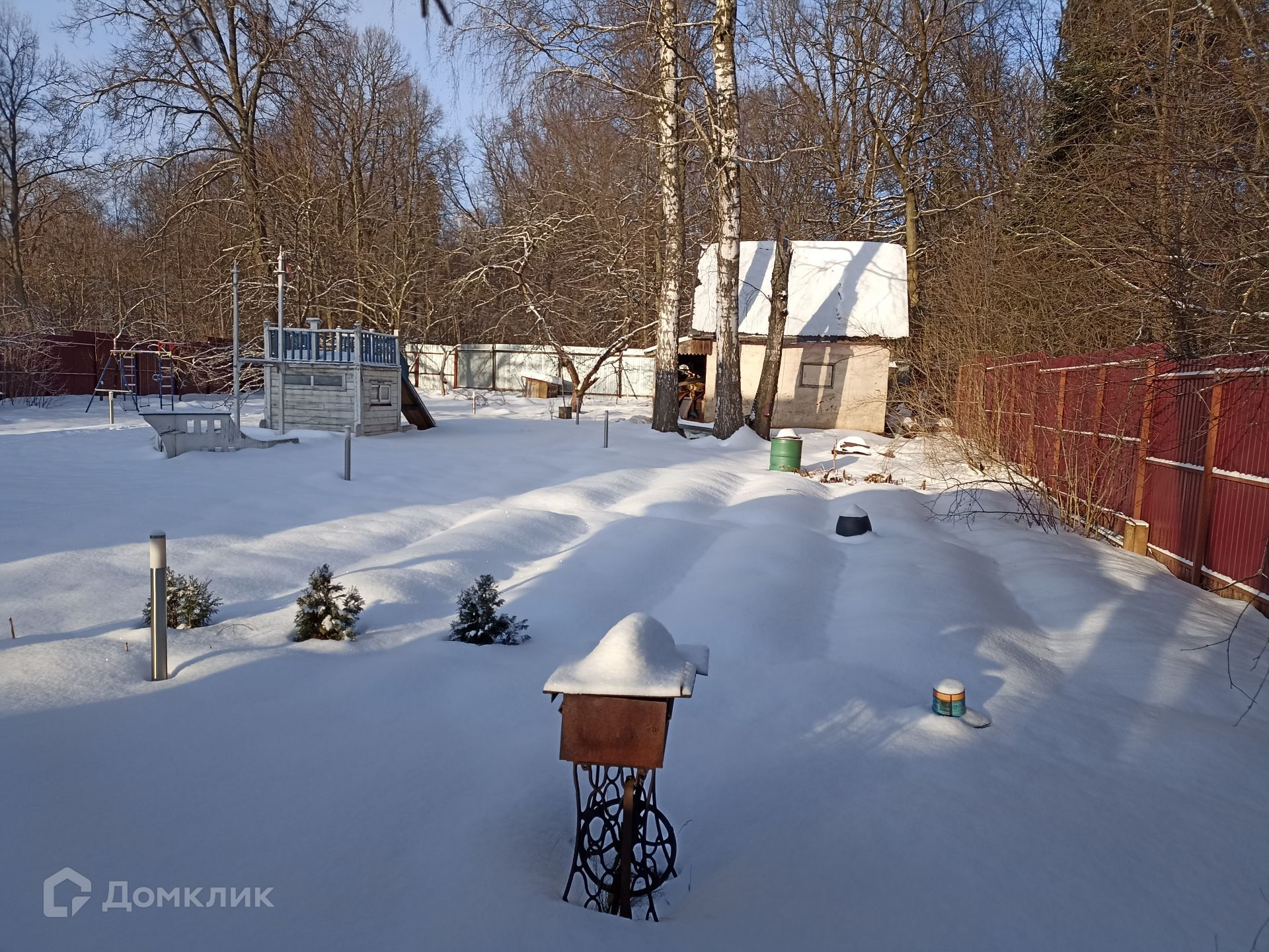 Просторный и ухоженный земельный участок правильной прямоугольной формы, площадью 13 соток. Территорию украшают взрослые деревья лиственных пород, среди которых дуб, липа, березы, а также садовые - яблони, груша, сливы, вишня; кустарники - крыжовник, смородина. На территории участка своя земляничная поляна, грибы; есть колодец и скважина (49 м) для водоснабжения дома, беседка, рубленная из бревна, уличный санузел, сарай для хранения хоз. инвентаря.