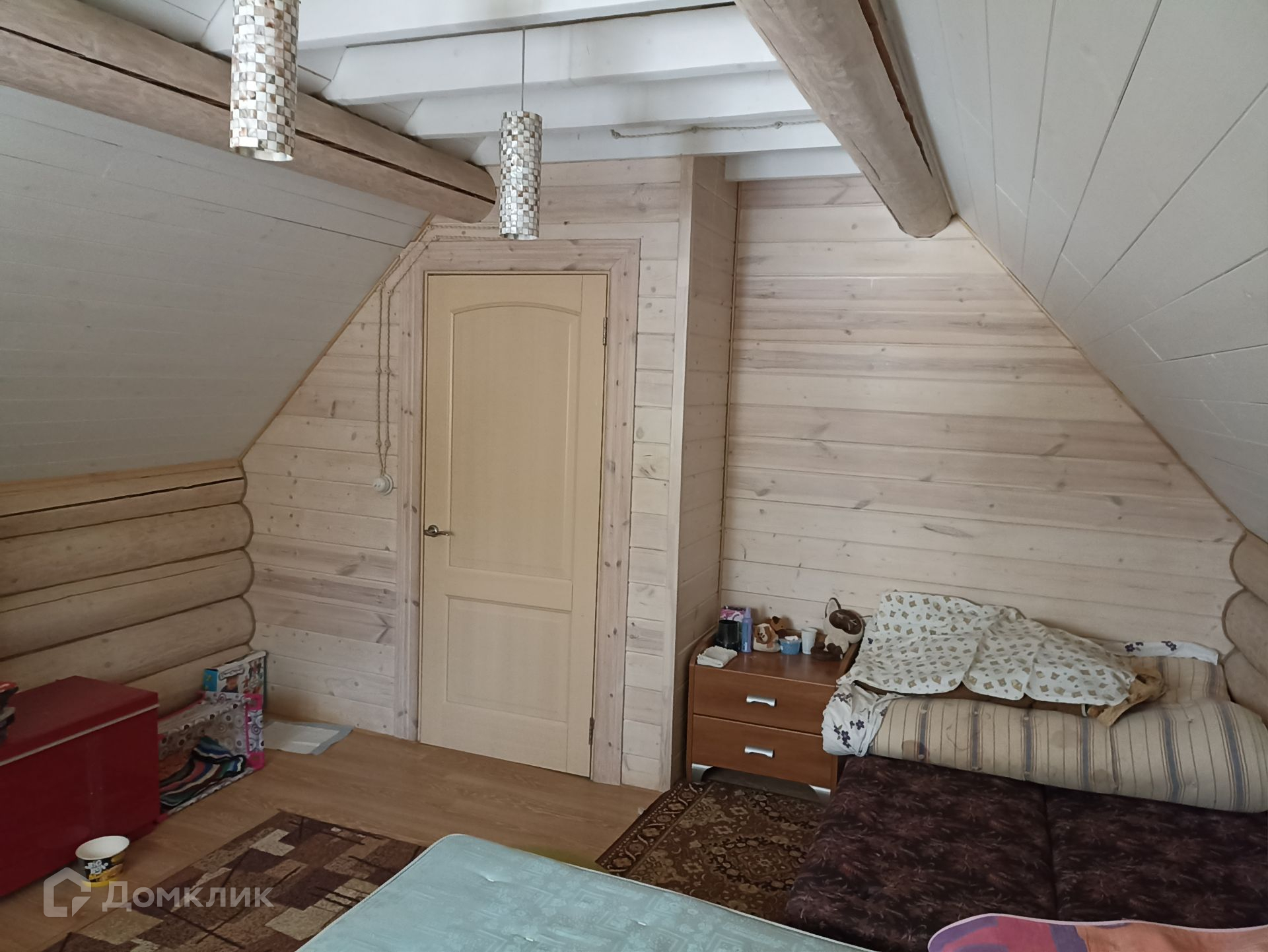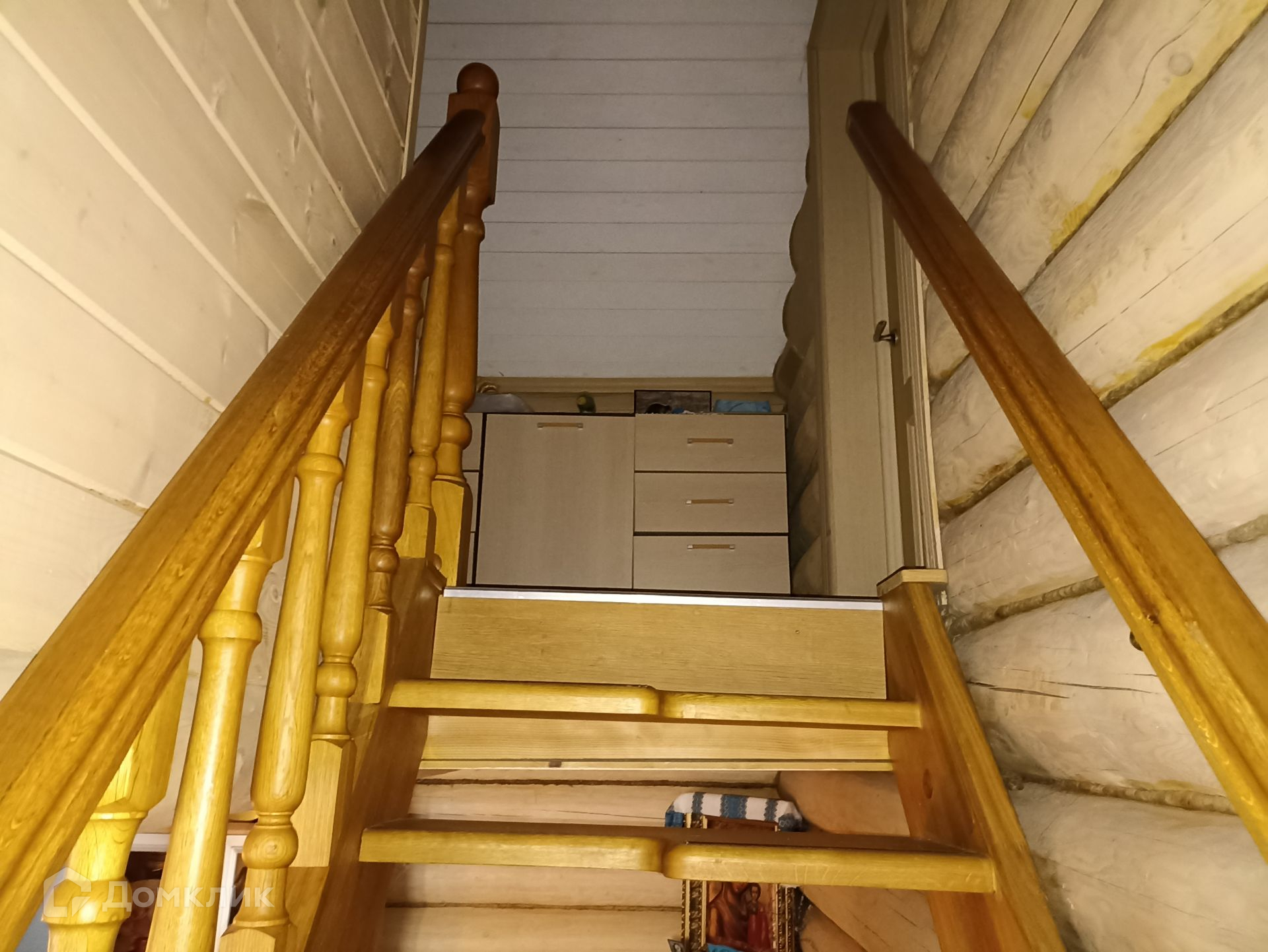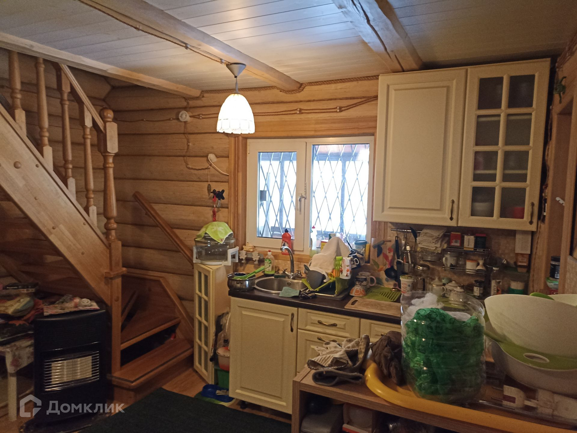 Дом размером 57,2 кв.м, на первом этаже которого основные площади отведены под кухню - столовою и веранду, есть санузел и помещение для парилки. Второй этаж состоит из двух комнат - спальни и детской. Лестница на второй этаж изготовлена из ценных пород древесины - дуб. В доме имеется погреб (4х4 высотой 1,6 м) для хранения солений и варений.