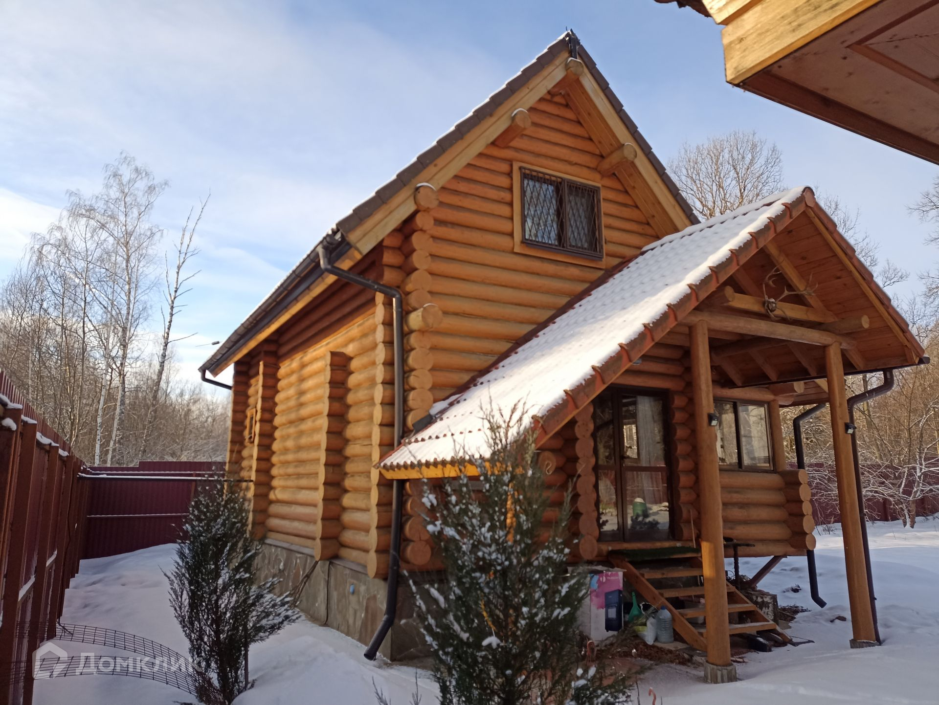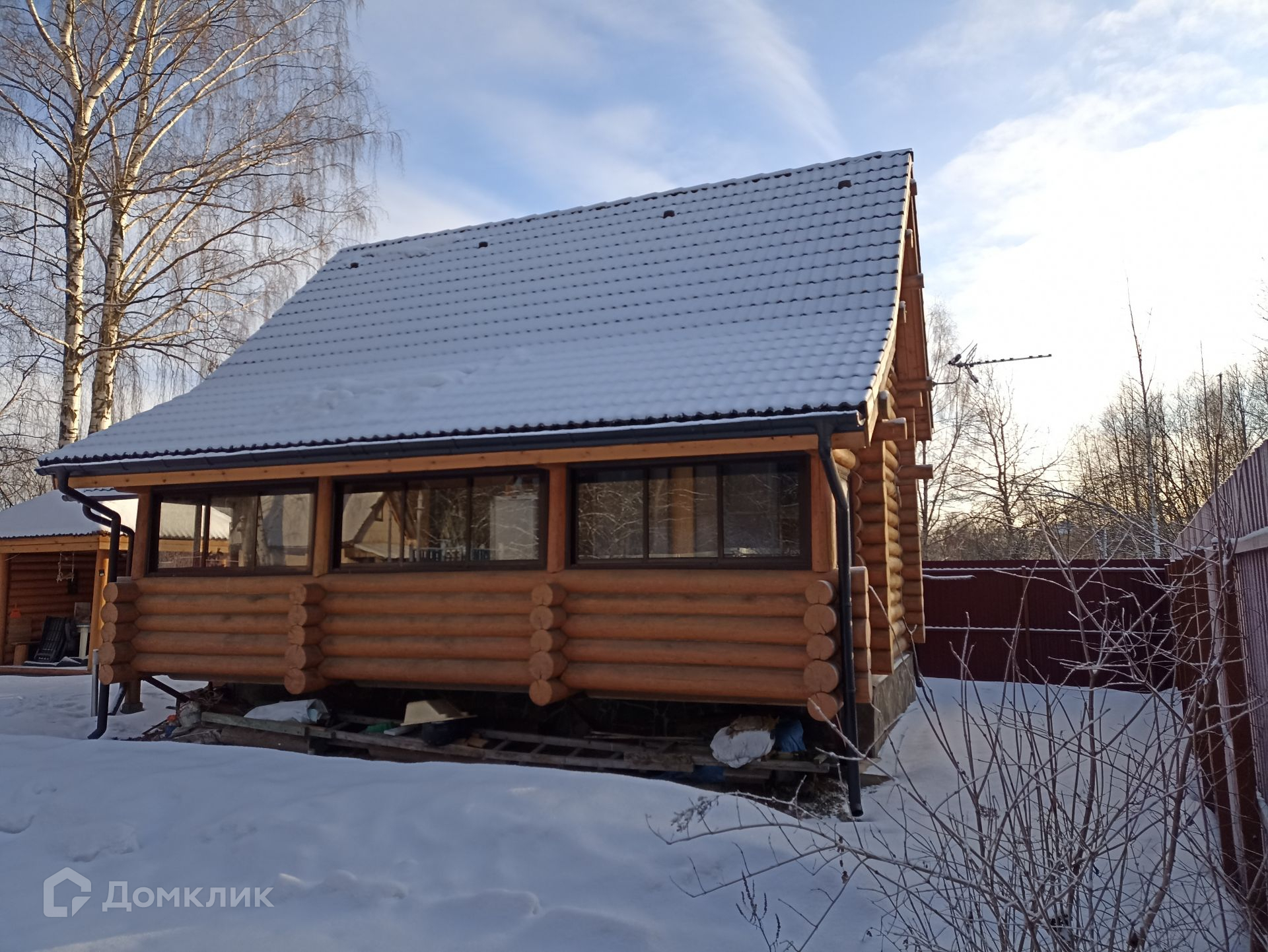 Капитальный ленточный фундамент дома снаружи облицован диким камнем, смотрится современно и является дополнительным украшением постройки. Материал дома и веранды - рубленое бревно с подбором, тесом и шлифовкой; собран на мох, бревно зимней рубки - контролировалось поездками лично в Солигалич (недалеко от Чухломы). Дерево обработано материалами - антиплесень/грибок в два слоя краски ТопЛазурь. Остекление дома - двухкамерный стеклопакет, ламинация; на веранде - алюминиевое по всей длине. Электропроводка внешняя, ретро - помимо комфортной эксплуатации и функции безопасности для деревянных построек имеет дополнительный декоративный эффект.