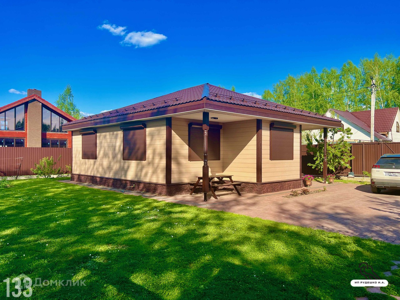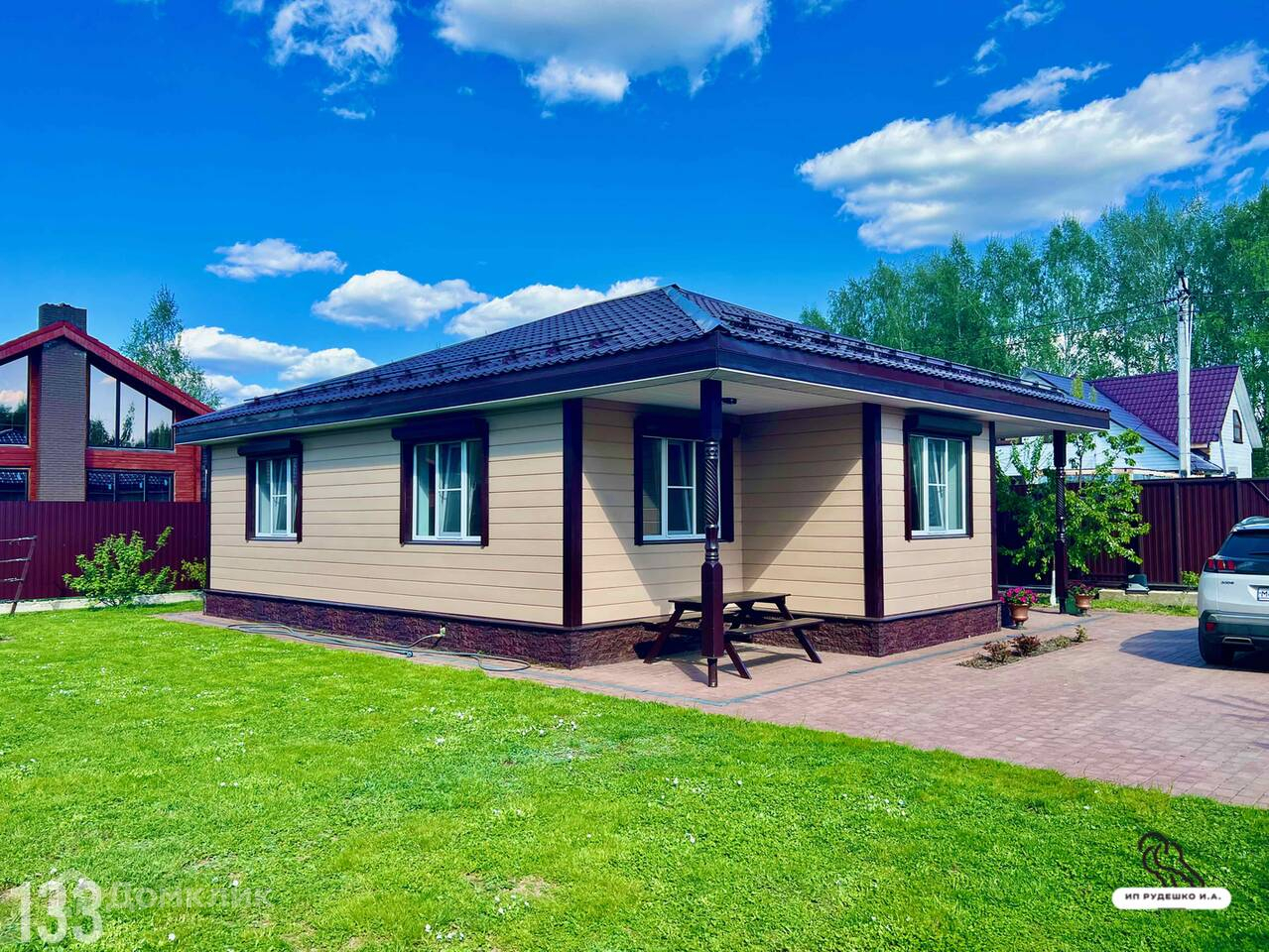 Дом (дача) 81,4 кв.м. на участке 6 соток для ПМЖ в пос. Новый Городок Щелковское шоссе 15 км от МКАД в СНТ Каскад д. 24. Дом 2016 года постройки. Полностью готов для круглогодичного проживания. Свайно-ростверковый фундамент. Стены из бруса 150 мм, снаружи и внутри утеплен базальтовой ватой, отделка имитацией бруса. Крыша вальмовая из металлочерепицы, установлены снегозадержатели. Водосточная система с отводом в дренаж. Окна пластиковые двухкамерные стеклопакеты, профиль 70 мм. На окнах рольставни с электроуправлением. Утепление пола, потолка и крыши 200 мм. Высота потолков 2,70 метра. Входная дверь для загородных домов с тройным терморазрывом. Пол керамогранит, мрамор. В доме две комнаты по 15 кв.м., кухня-столовая 30 кв.м., сауна 4,5 кв.м., с/у 10 кв.м., техническое помещение. Сауна с соляными камнями с подсветкой. Электрокамин с блоком управления. Душевая кабина под заказ. Подвесной унитаз. Сантехника производство GROHE. Умывальник с подветской зеркала. Теплый пол в прихожей, зоне обеденного стола и в ванной комнате. Дом меблирован. Кровать Dream Land. Кухонный гарнитур производство Премьер. Бытовая техника Бош, Самсунг. Интернет. Светодиодное освещение. Электричество 15 кВт, сельский пониженный тариф. Инновационное электрическое отопление от компании ЭффектЭнерго. Вода из колодца. Бойлер на 80 литров. Насосная станция для подачи воды Grundfos SCALA2. Автономная канализация ТОПАС-5Пр. Участок 6 соток. Огорожен забором на свайно-ростверковом фундаменте из крашенного профилированного листа. Откатные ворота с автоматикой. На участке расположена хозпостройка с морозостойкими характеристиками в стиль с домом. Имеется детская площадка. Место мангала оборудовано. Уличная мебель. Площадка под автомобиль и отмостка выложены брусчаткой. Сделан дренаж участка по периметру дома с выводом воды за пределы участка. Имееся множество фруктовых деревьев: яблони, груши, черешня, вишня, слива, абрикос, алыча. Кустарники: черная и красная смородина, жимолость, крыжовник. 150 кустов клубники, малина, розы. Газон. Триммер и газонокосилка бесшумные на батарейках. Дом под охраной. Видеонаблюдение. Подъезд к участку по круглогодичной асфальтированной дороге. Ночное освещение. Вся необходимая инфраструктура: школа, детский сад, сетевые магазины, ДК, стадион, поликлиника, Сбербанк в пос. Новый Городок в 2 км от участка. В 5 минутах ходьбы заповедник Лосиный Остров. В 1 км Ледовское озеро: купание, рыбалка. Весной у участка селятся соловьи... Свободная продажа. Ипотека и материнский капитал возможен.