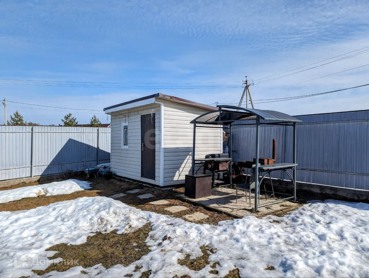 На участке располагается баня-бочка, хозблок и мангальная зона. Входная и въездная группа облицована плиткой.