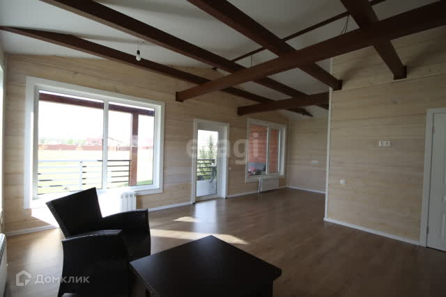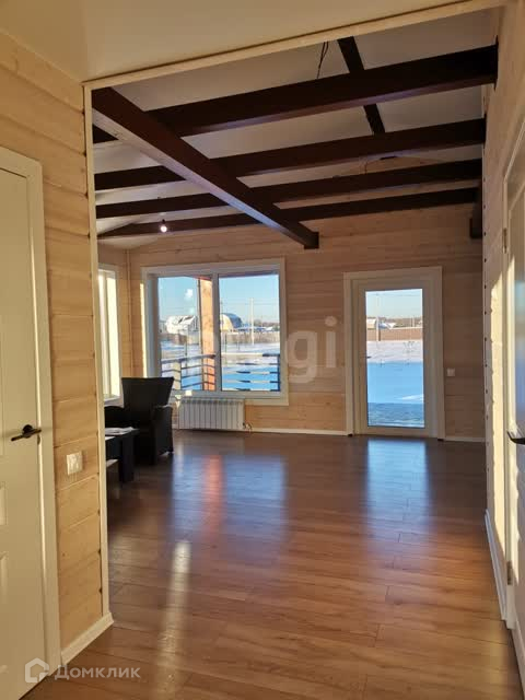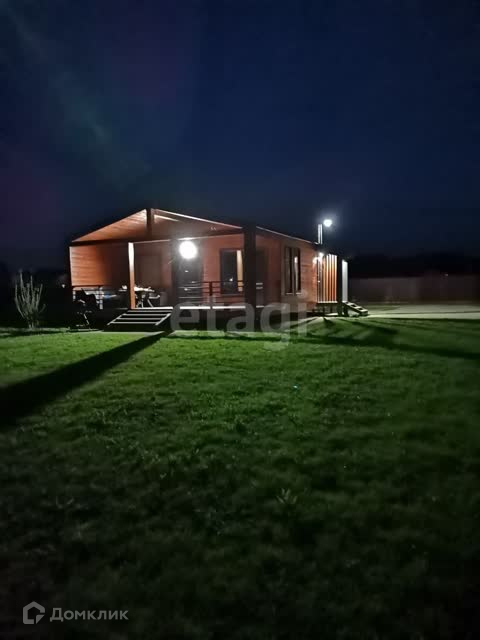 Дом по подрядному строительству. По проекту просторная кухня-гостиная, 2 спальни, санузел и сауна. Обустроен паркинг, терраса возле дома 25 кв.м. Каркасный дом, выполнен с имитацией бруса. Утепление 200 мм мин ватой, что позволяет прекрасно сохранять тепло зимой и не дает нагреваться дому летом.