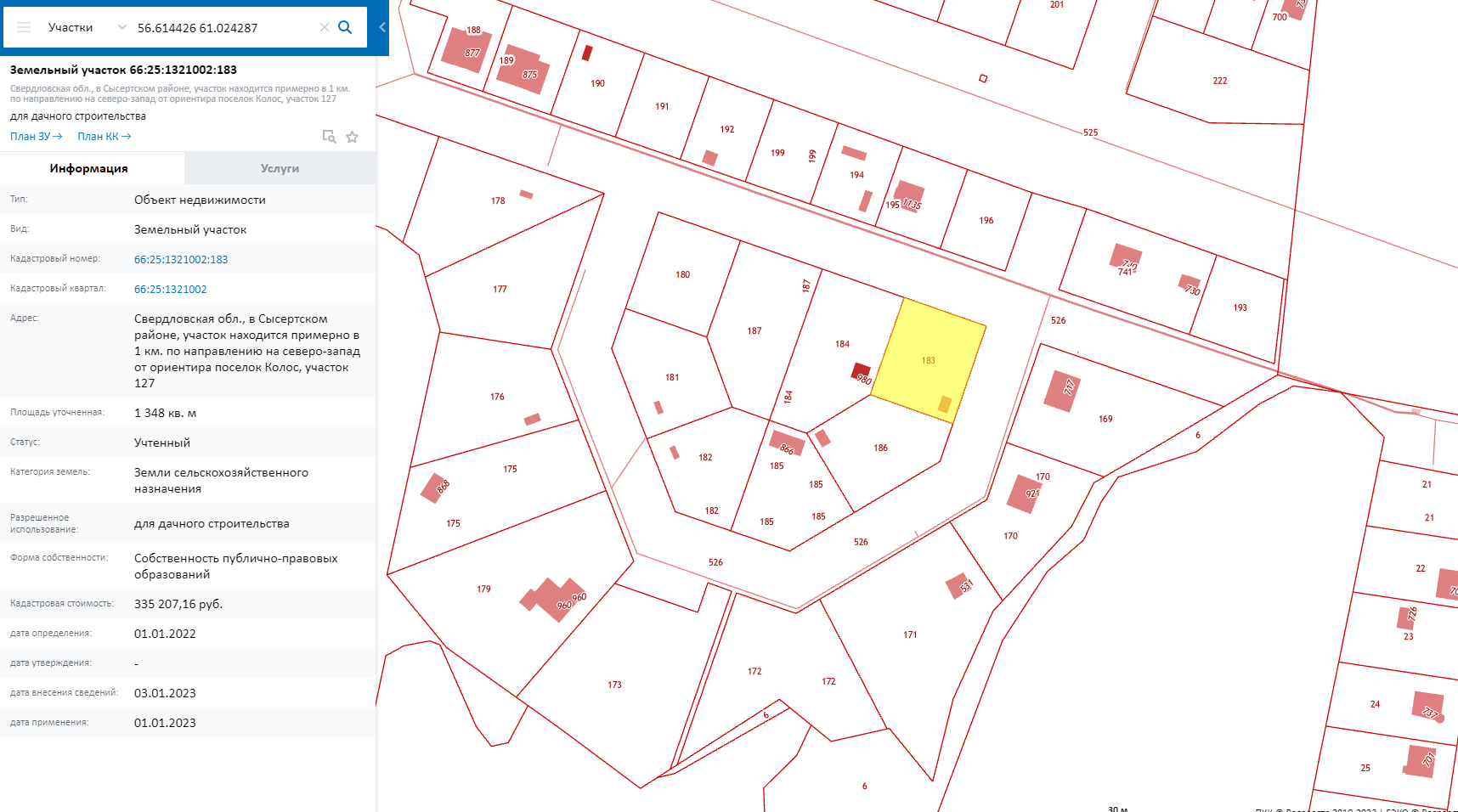 Кадастровый номер ЗУ: 66:25:1321002:183