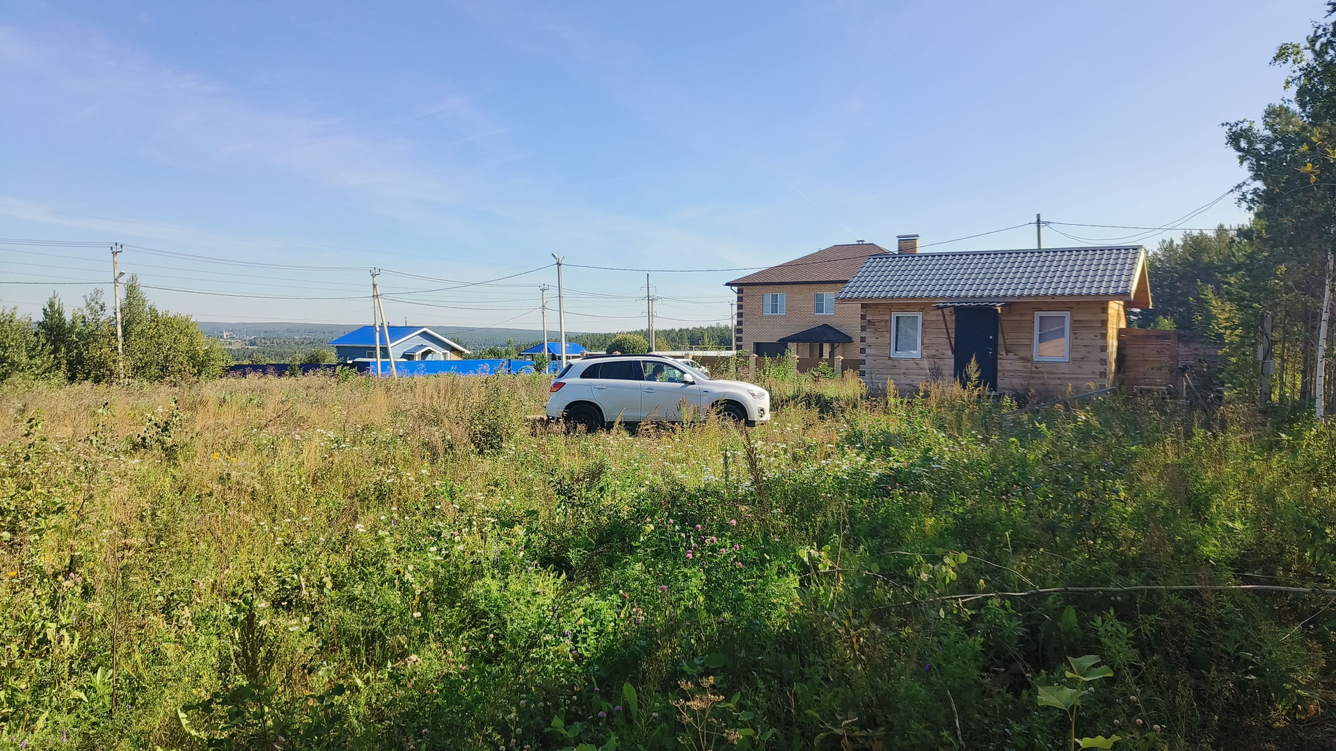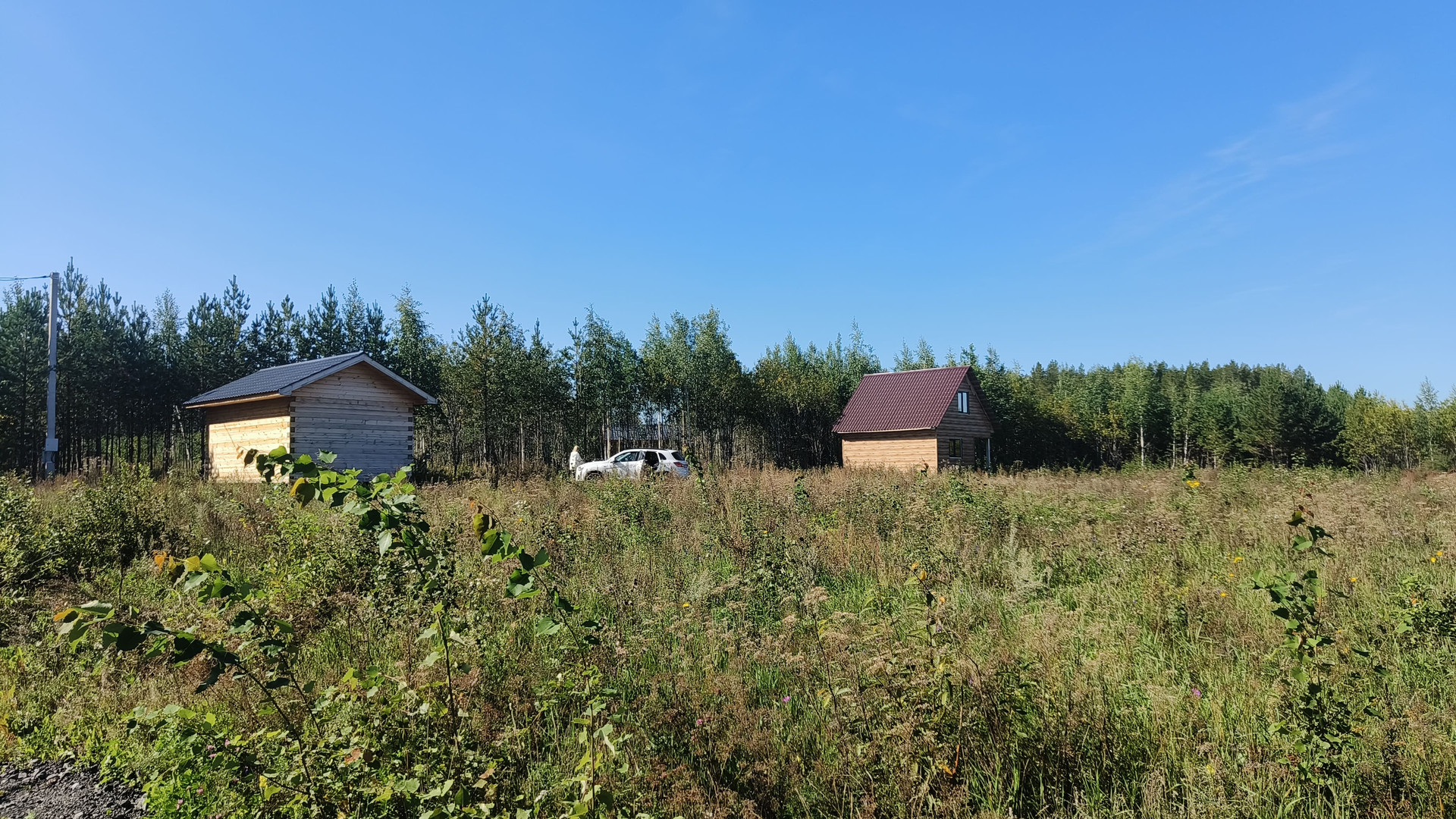 Газ у границы участка. Есть электричество. Воды нет, нужно бурить скважину. Отсыпан заезд на участок.
