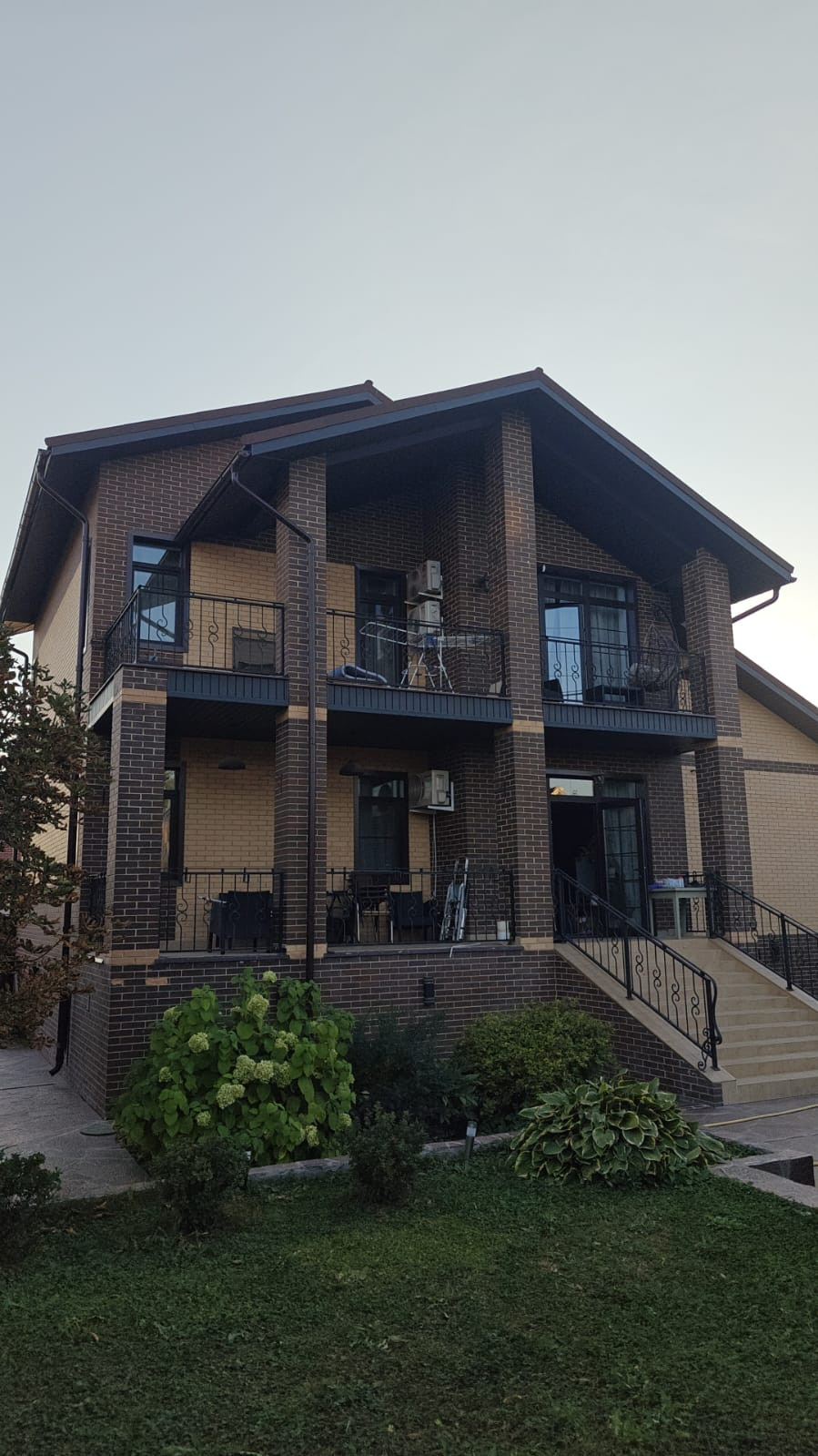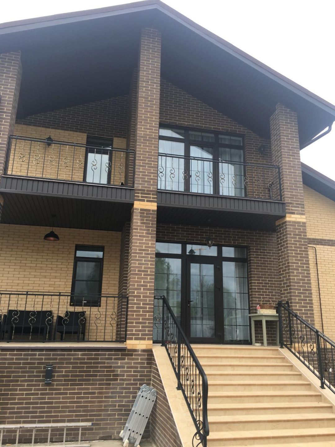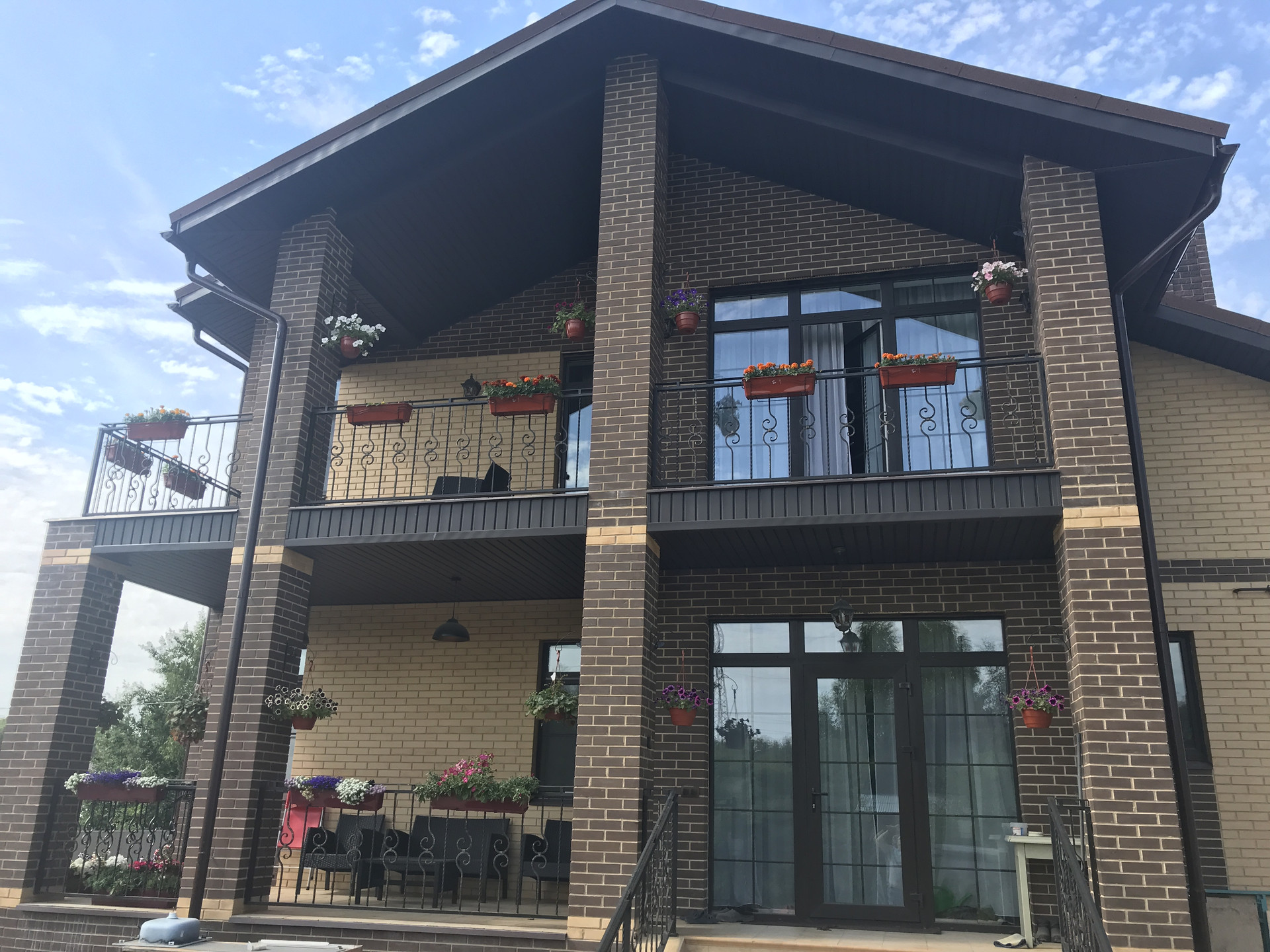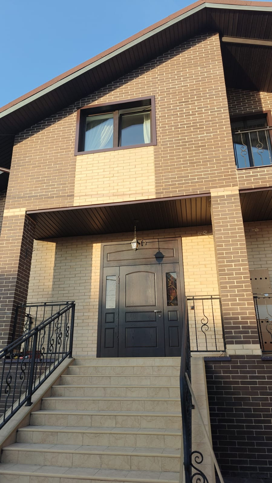 Конструктив дома возведен из керамических блоков и облицовочного кирпича. Между цокольным и первым этажом выполнена монолитная плита перекрытия. Кровля композитная черепица, установлены пластиковые окна и двери, капитальная металлическая входная дверь с отделкой натуральный шпон дуба.