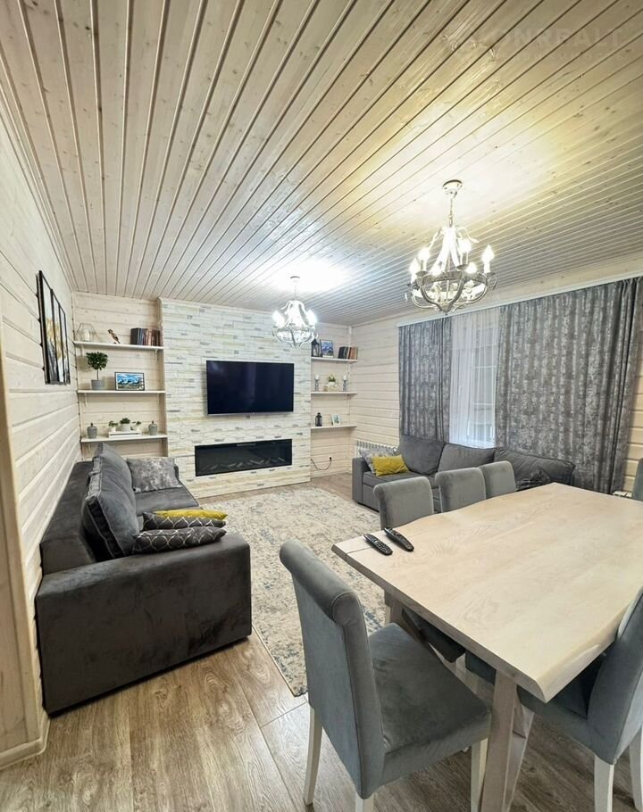 Просторные комнаты, экологичные деревянные стены и камин создают атмосферу уюта.