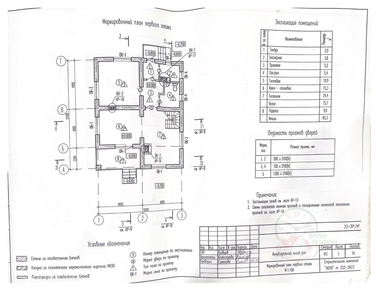 Дом из газобетонного блока. Кладка из полнотелого керамического кирпича М100.