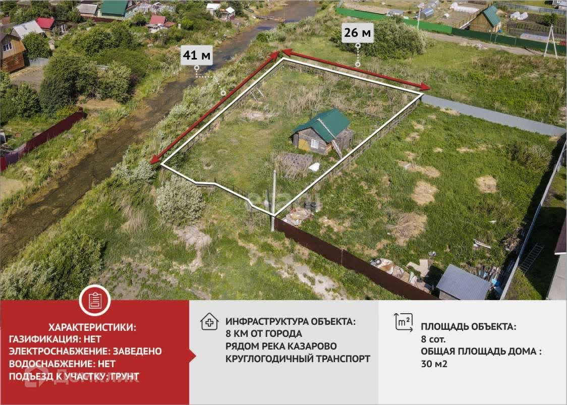 К продаже предлагается дача в д. Казарово, 8 км Велижанского тракта с/о Аккорд. Категория земель: земли населенных пунктов. Для садоводства и огородничества. В садовом обществе активно ведётся застройка, соседи проживают круглогодично. С/о расположено в деревне Казарова с развитой инфраструктурой.