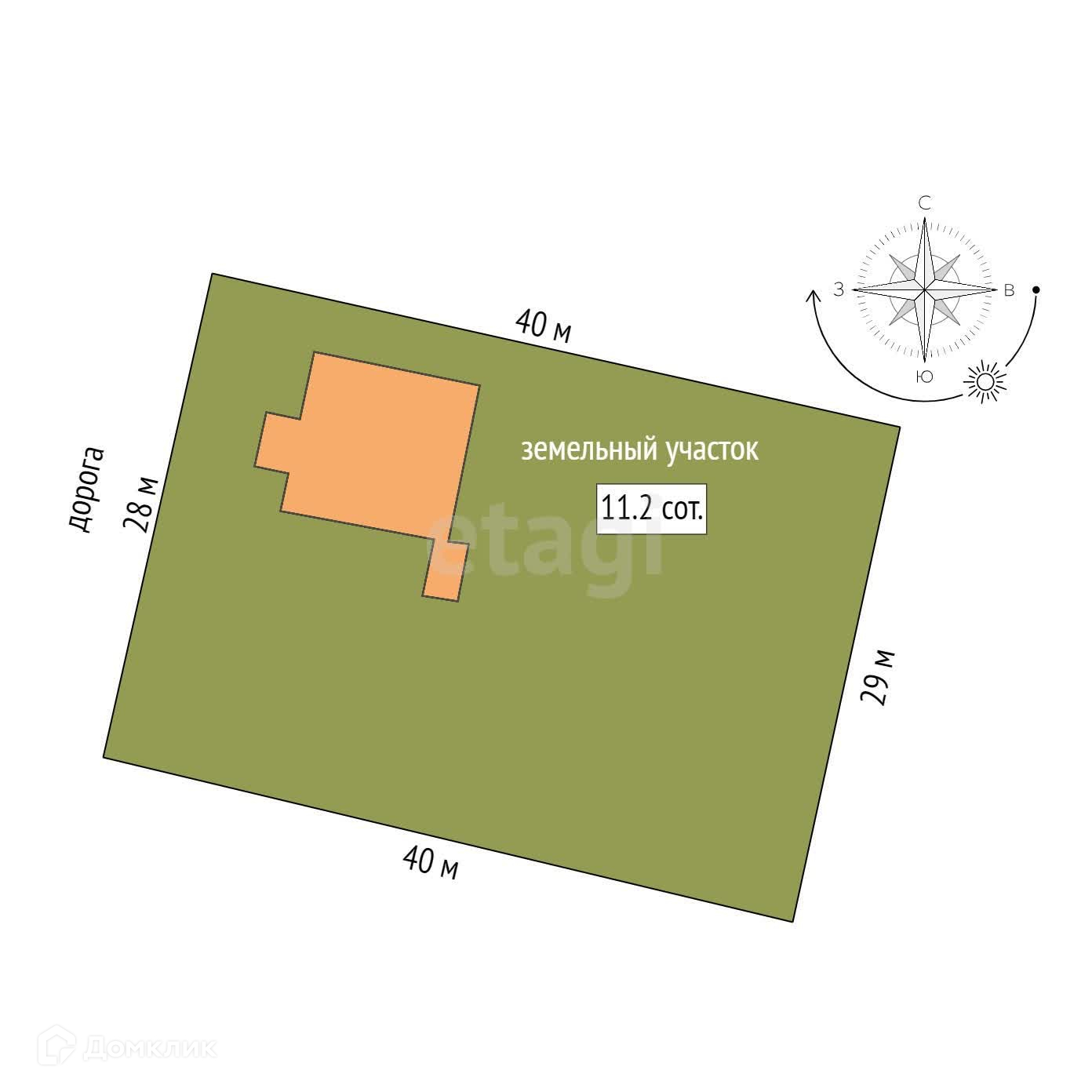 Площадь участка 11 сот.