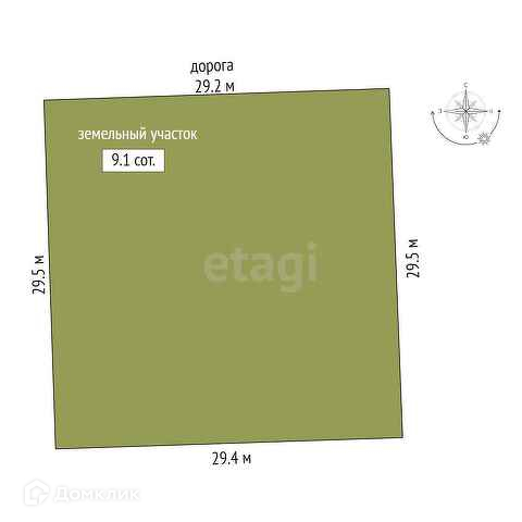 Площадь участка 9.1 сот.