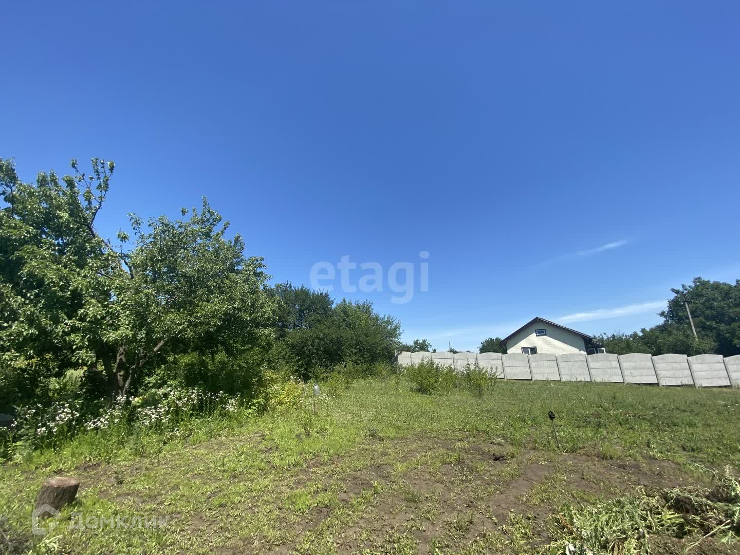 На участке есть плодово-ягодные деревья, участок ровной формы!
