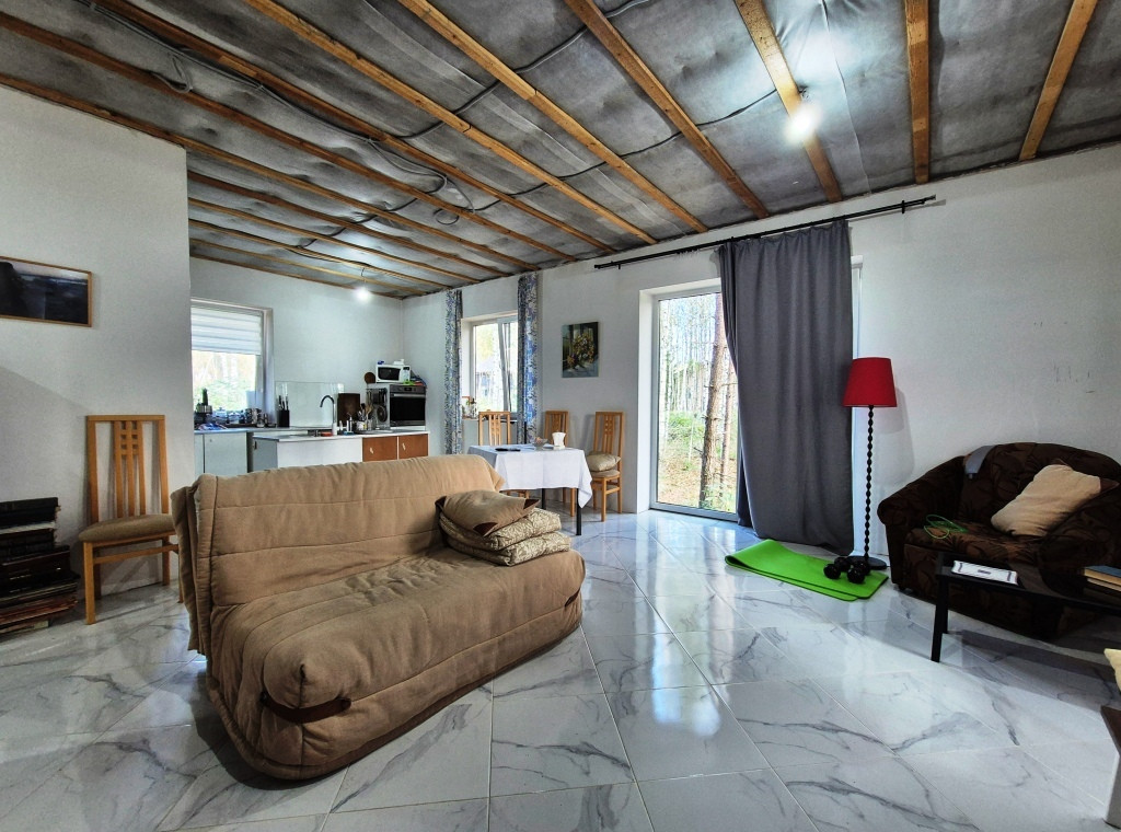 Дом расположен на участке площадью 12.98 соток (два участка площадью 664 кв.м. и 634 кв.м.), участок расположен в конце улицы. На участке сохранены сосны, березы, черника, малина, растут грибы. Категория земель: Земли сельскохозяйственного назначения; виды разрешенного использования: для ведения дачного хозяйства. Территория COCH. Без членских взносов. Дорога к участку в долевой собственности.