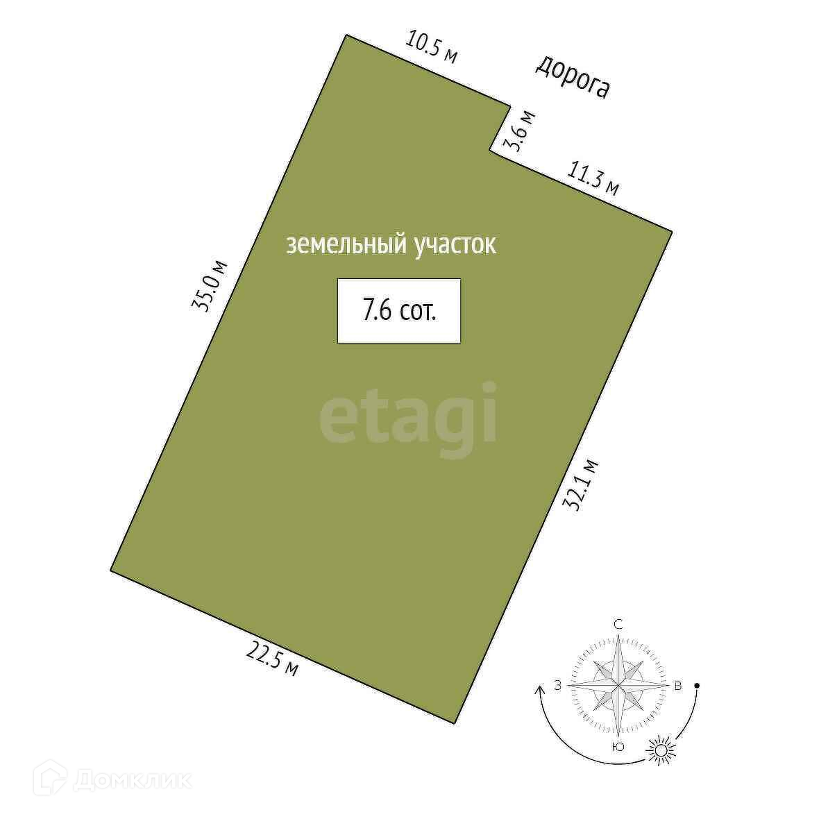 Площадь участка 7.6 сот.