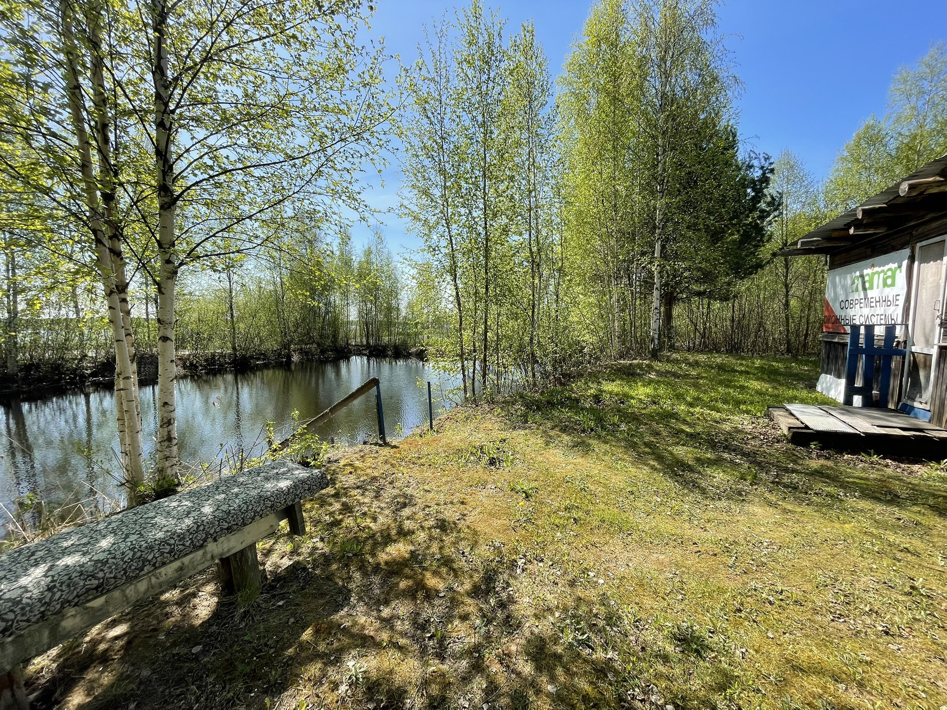 Участок поднят техникой благодаря поднятия земли выкопаны два больших пруда один изних выходит на реку шексну можно подьехать на лодке к дому.