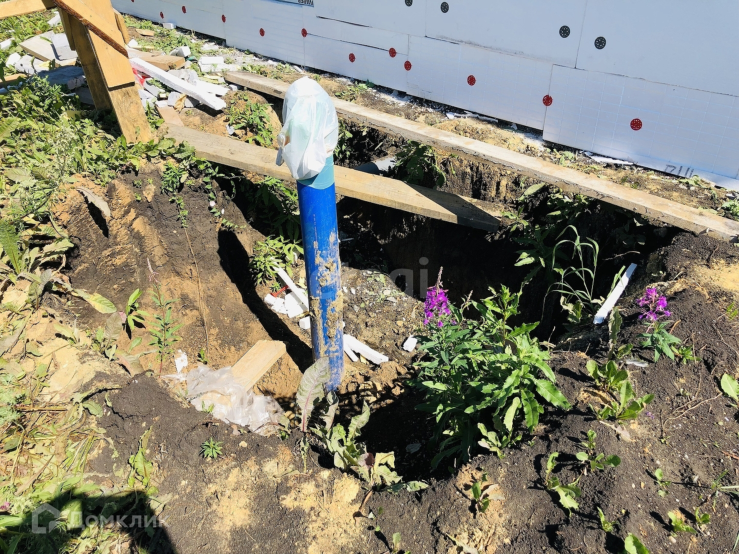 В доме скважина, отопление - теплые полы, электричество разведено.